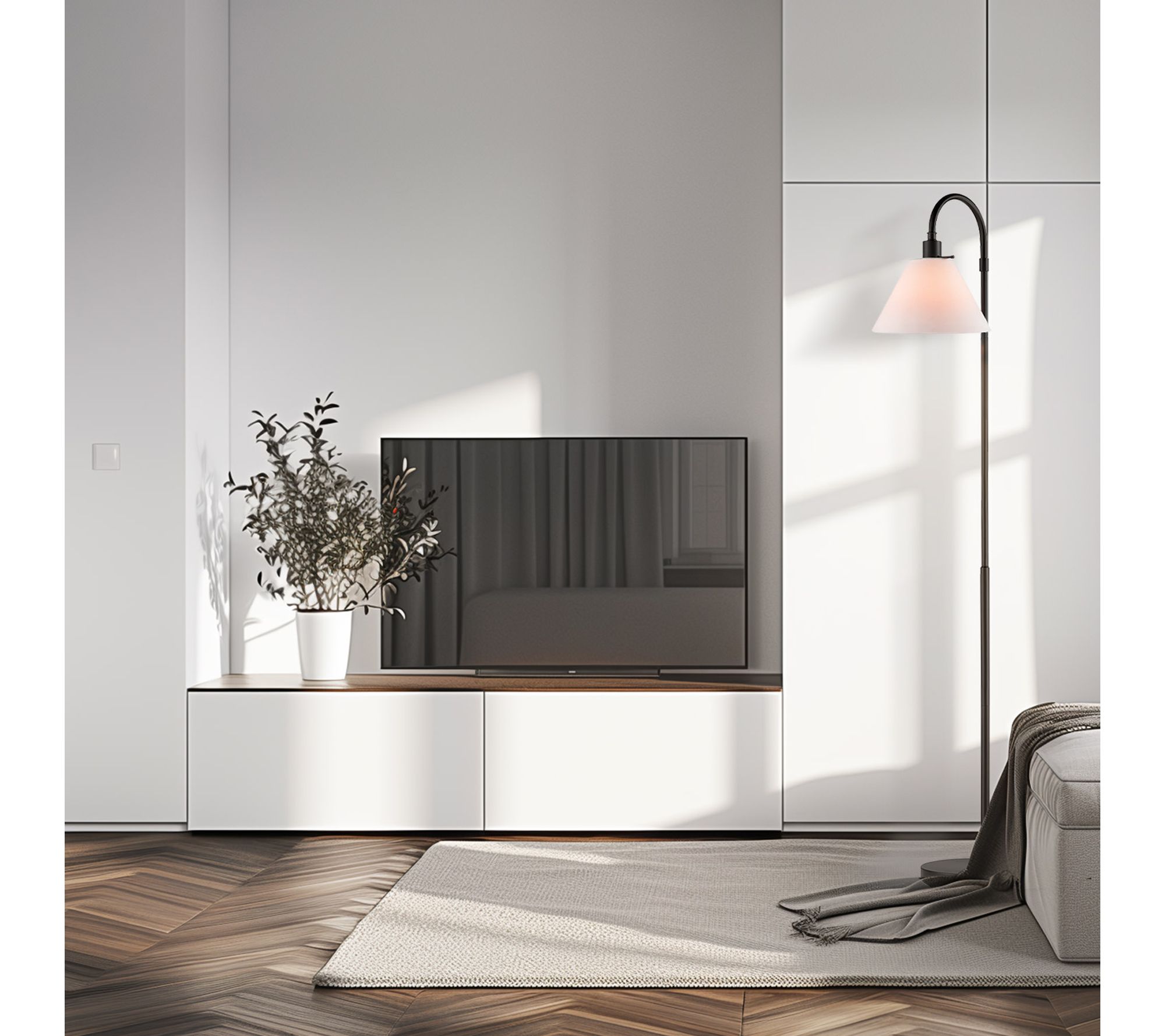 The matte black floor lamp brings a modern touch to your living space, featuring a sleek profile and a crisp white fabric shade that blends effortlessly with any decor. Whether you're curling up with a book or lighting up conversation with friends, its minimalist style enhances comfort while the six-foot cord lets you place it wherever you need a cozy glow. From Globe Electric.