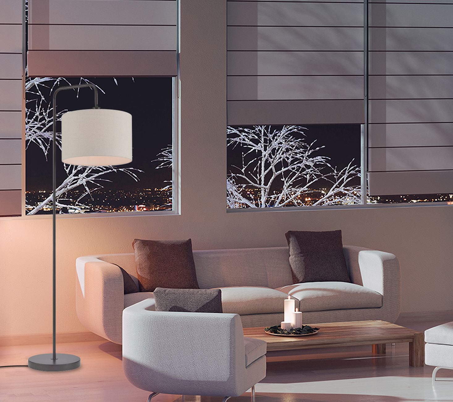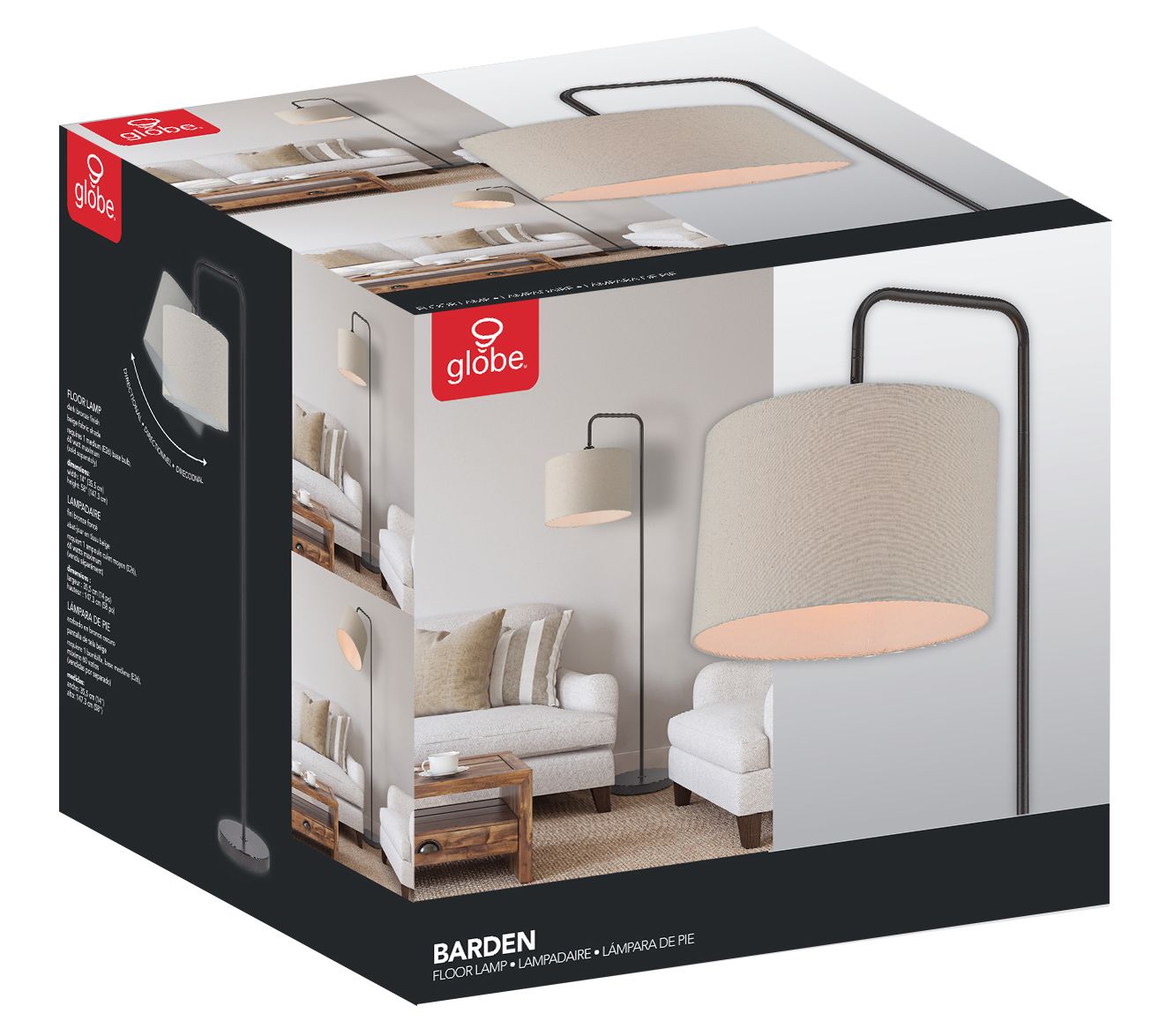 Illuminate dark corners and secluded nooks with the minimalist beauty of this Barden floor lamp. Designed with a dark bronze finish and a warm beige shade, it effortlessly complements nearly any color palette. From Globe Electric.