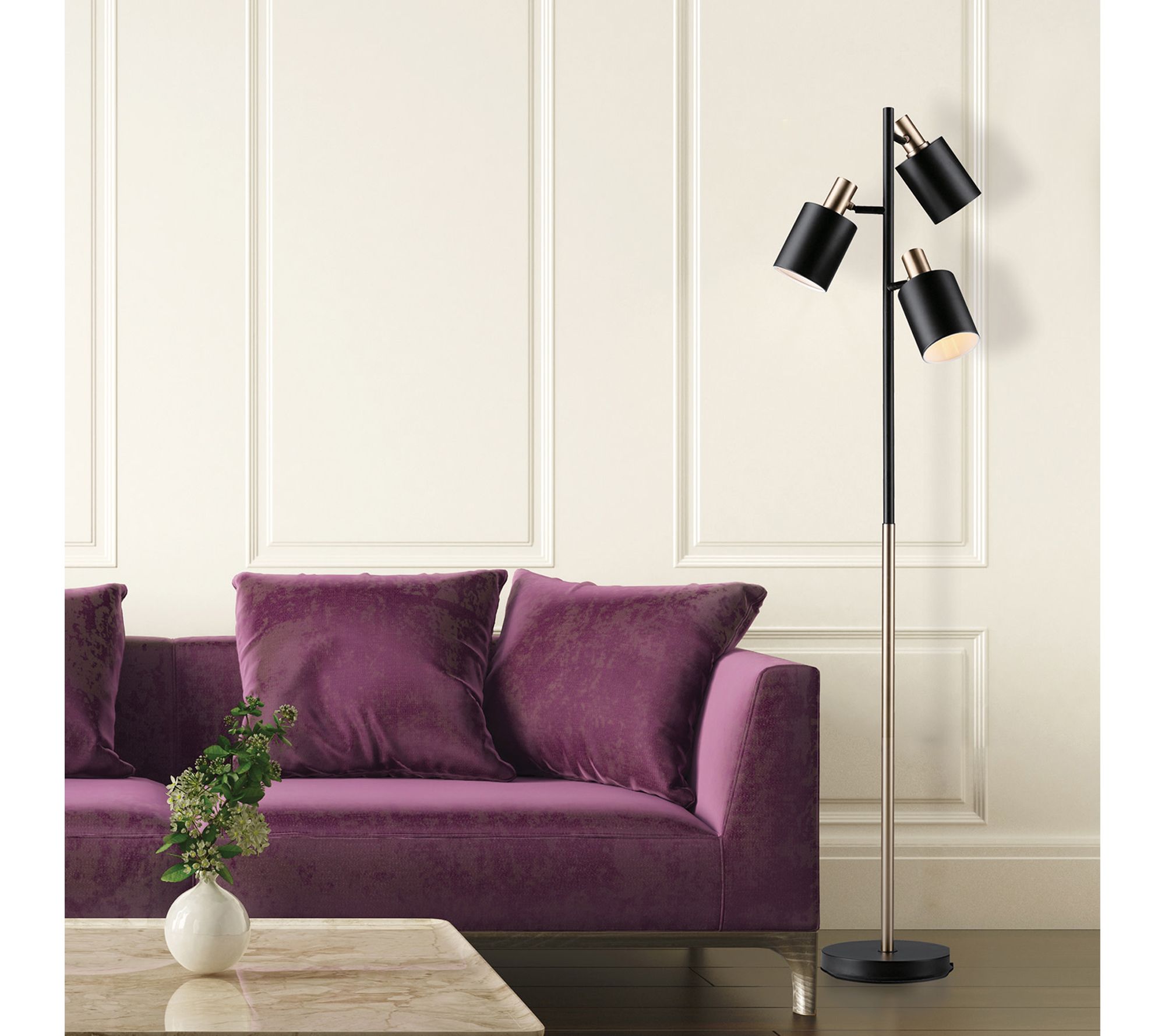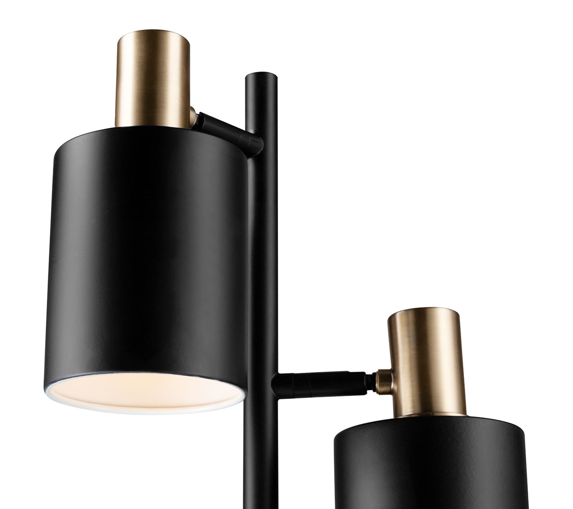 Create an inviting atmosphere and show off your style with the Fiona three-light tree lamp. Adjustable lamp heads let you focus light exactly where you want it, while a handy foot button makes turning it on and off simple. Add an upscale touch to living areas, bedrooms, or workspaces with this industrial-inspired matte black and brass design. From Globe Electric.