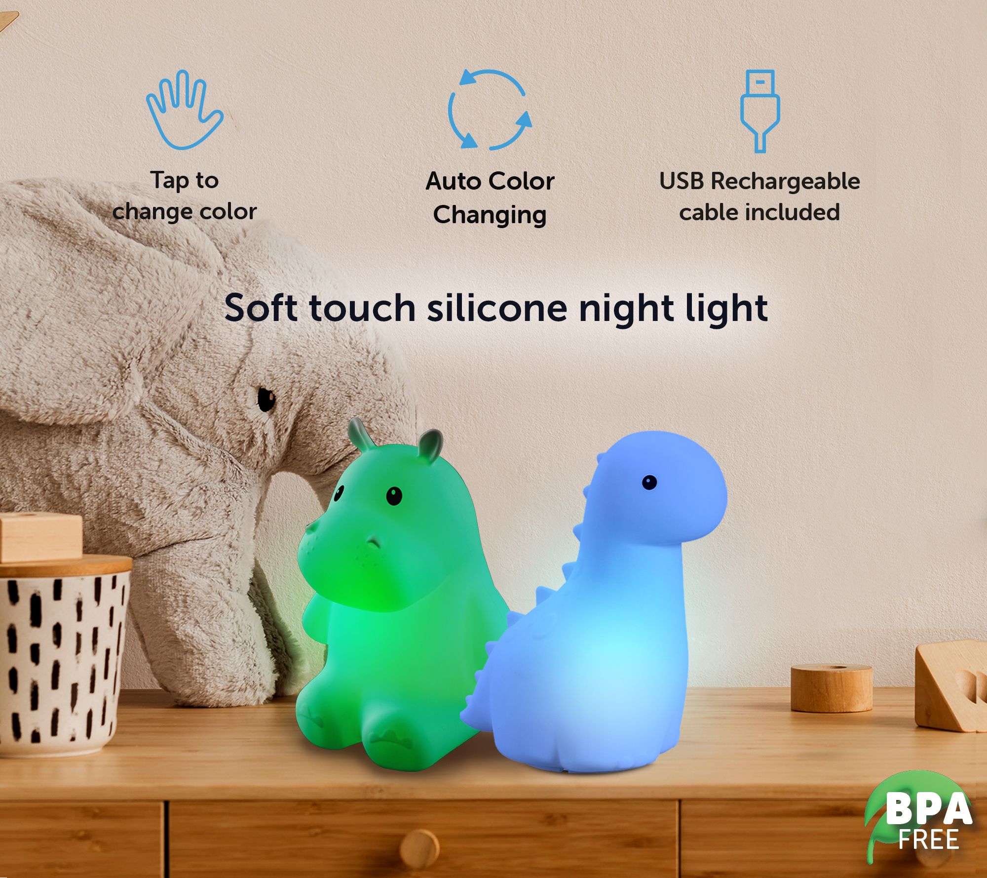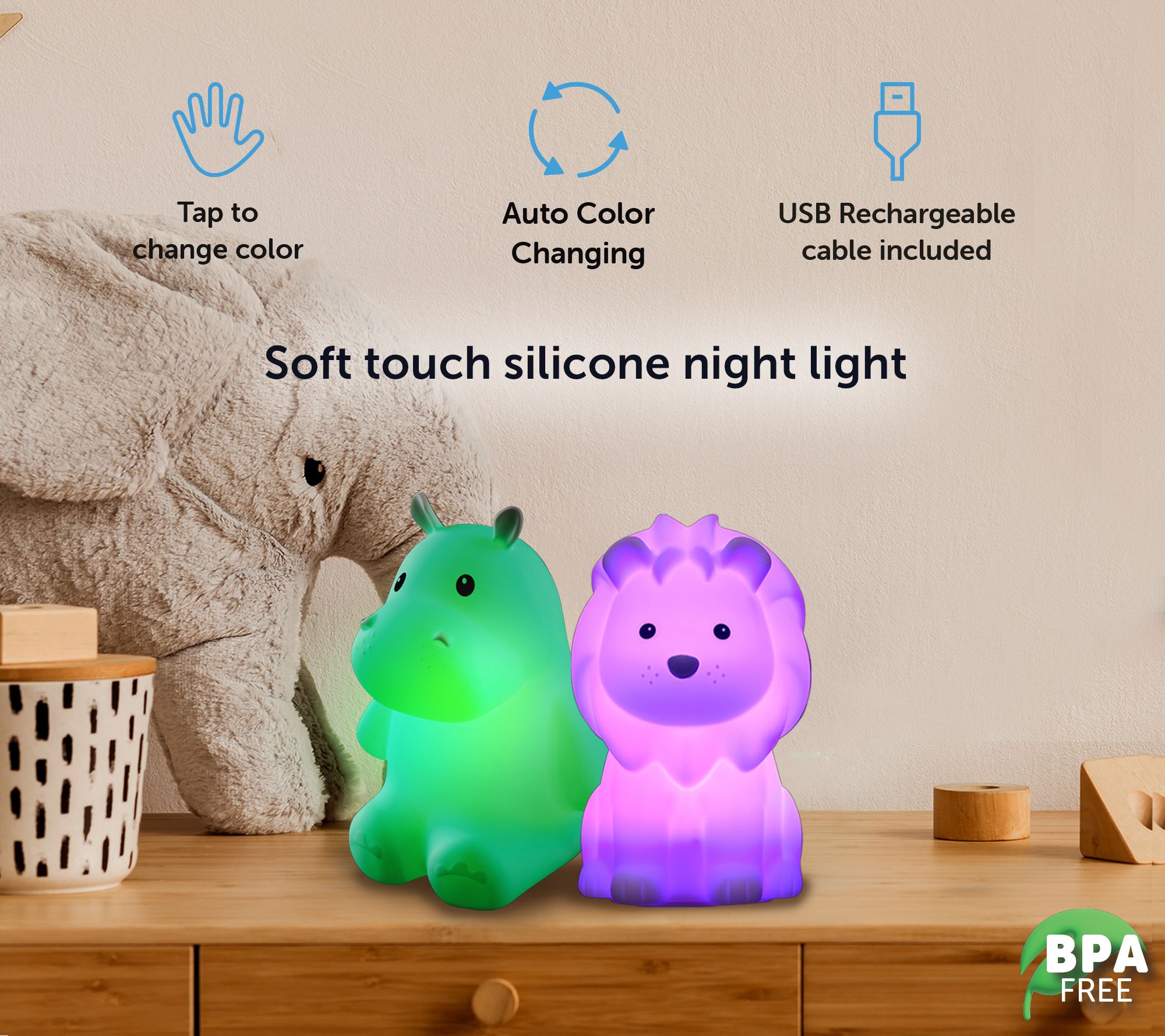 • Includes two animal tap lights and 2.6'L charging cable