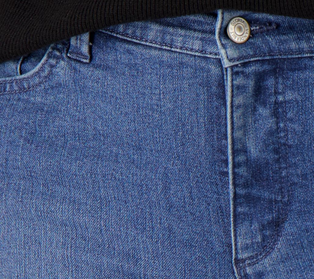 Features: five-pocket styling, high rise, shank closure, clean finish hem