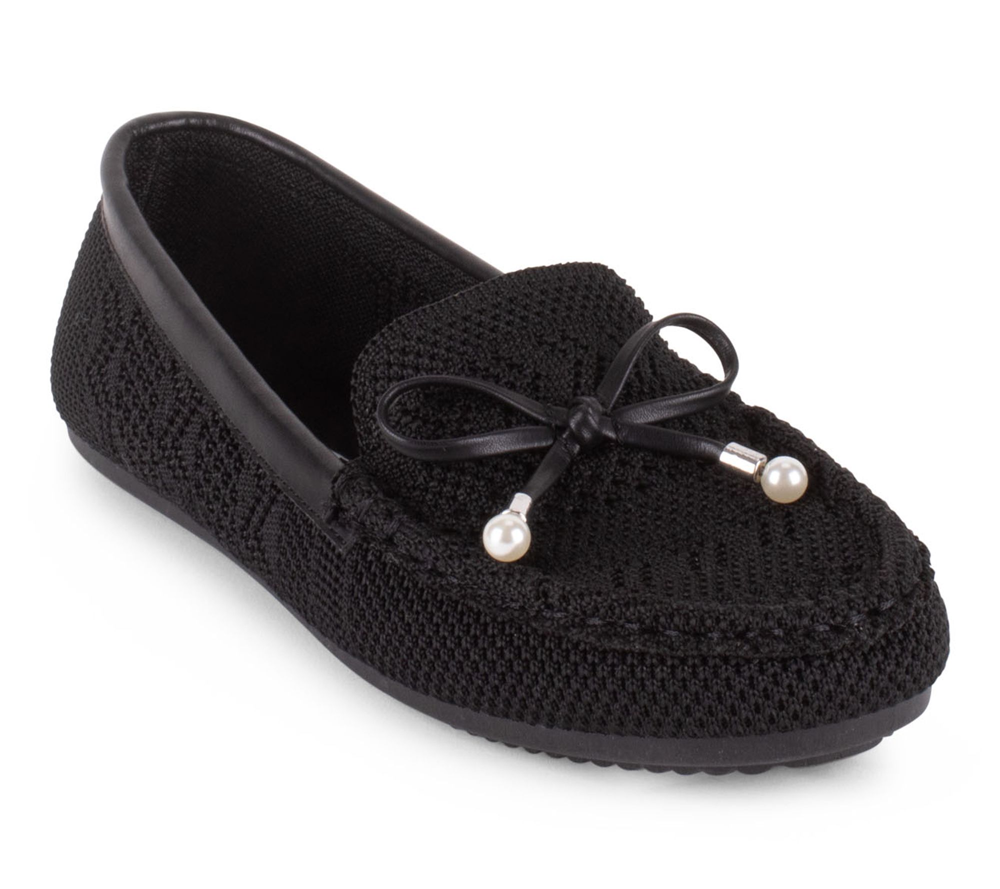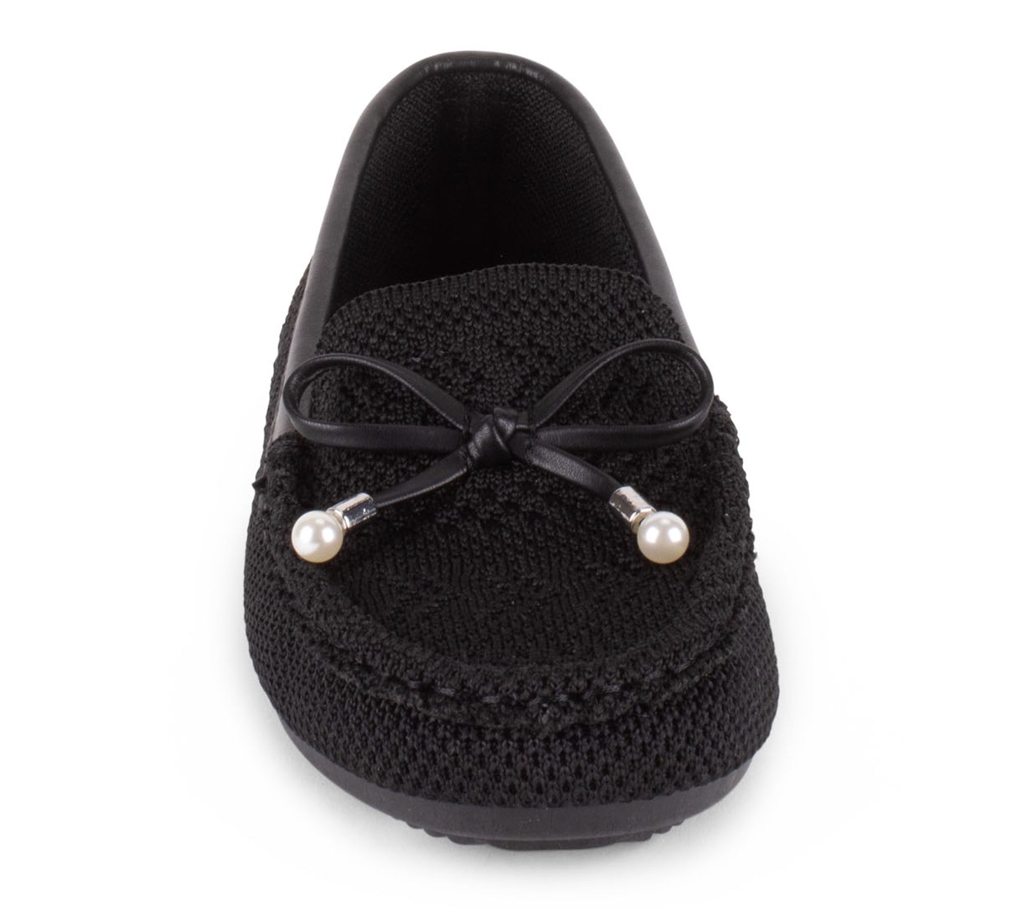 Mornings become effortless with these loafers, featuring a breathable knit upper adorned with a charming bow and touch of simulated pearl trim. Whether headed to the office or meeting friends for lunch, these women's shoes offer all-day comfort with easy slip-on access and a flexible rounded toe. From Gloria Vanderbilt.