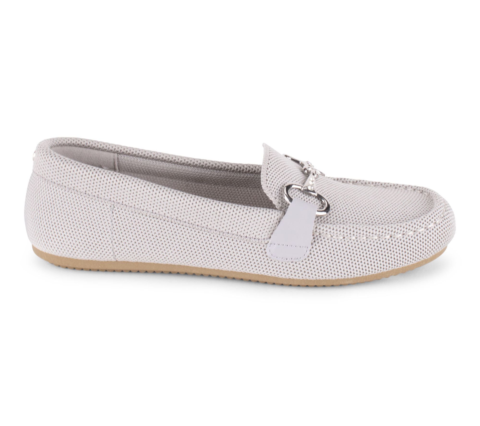 Enjoy casual chic comfort with these knit loafers, featuring a knit upper and sparkling crystal bit keeper detail. Designed for easy slip-on wear, this rounded-toe style is ideal for busy mornings, relaxed brunches, or everyday outings where comfort meets a touch of shine. From Gloria Vanderbilt.