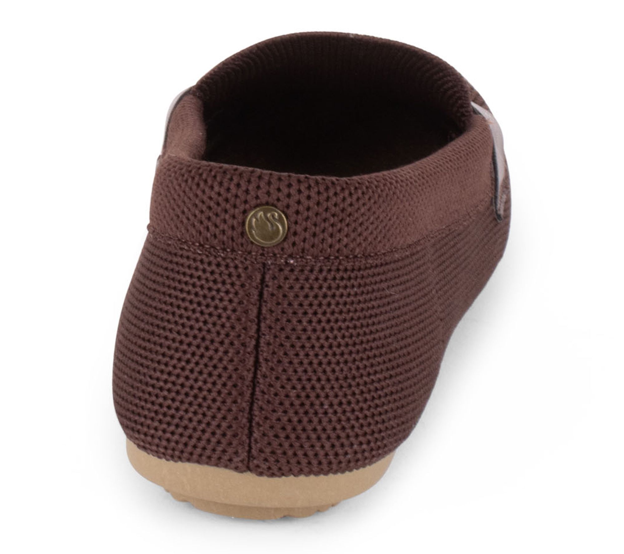 • Slip-on design with knit upper, double logo charm detail, PU trim, rounded toe