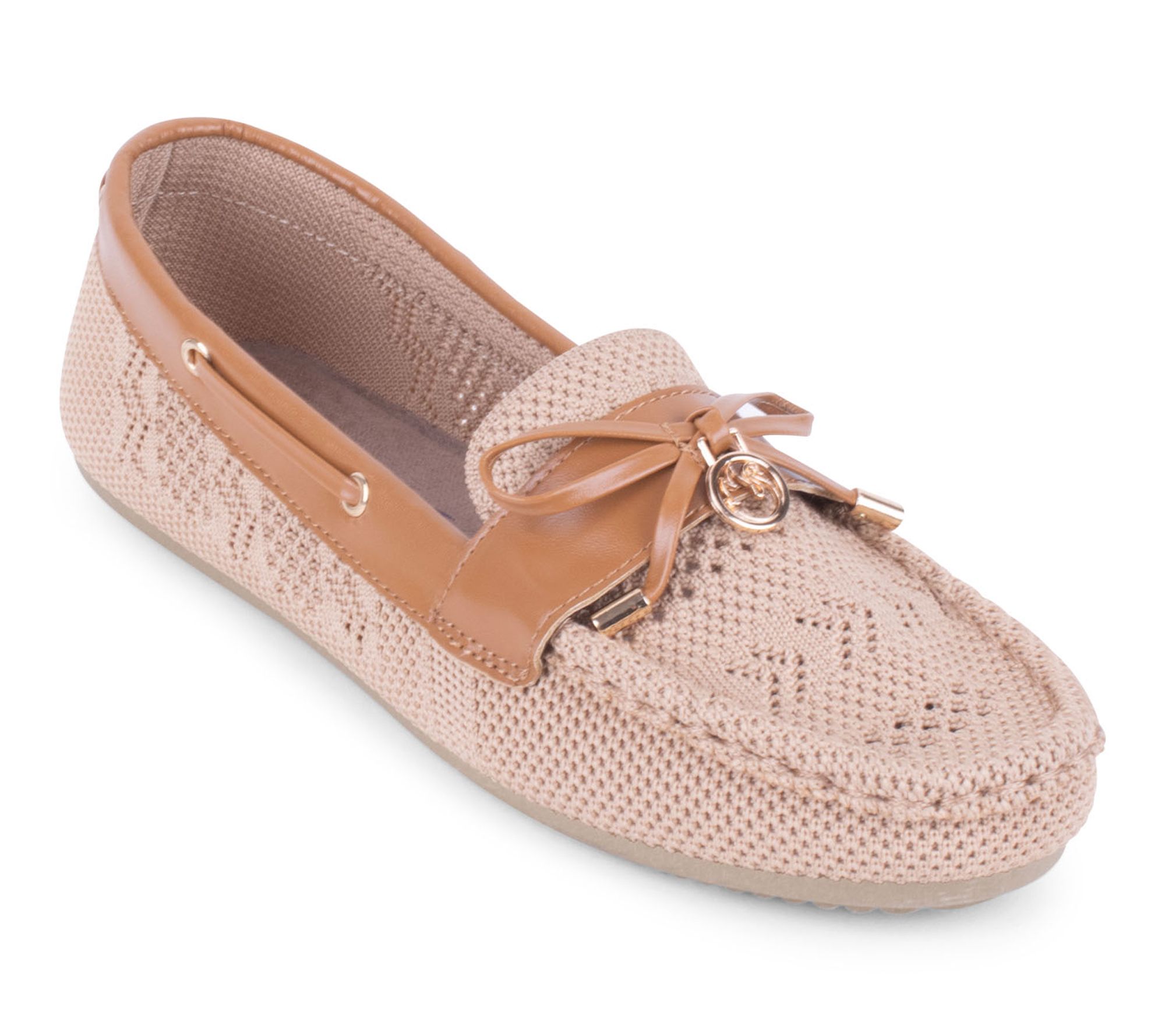 Stay comfortable from coffee runs to casual office days in these loafers, featuring a knit upper and sleek polyurethane trim for polished style. Their easy slip-on design and rounded toe offer a seamless fit you can wear all season long, perfect for busy mornings or relaxing weekends. From Gloria Vanderbilt.