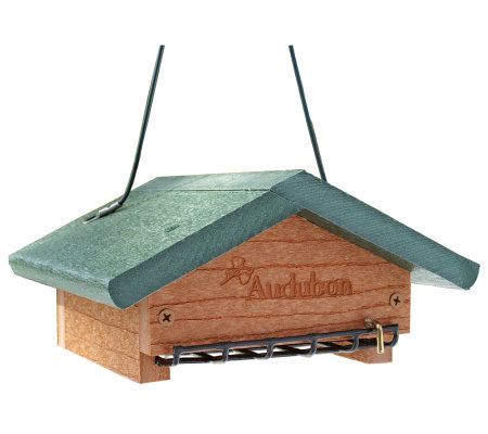 Keep your feathered friends full. Made from 90% recycled plastic, this suet feeder resists water, mold, and bacteria to create a healthier environment for birds. Its unique, upside-down design lets woodpeckers and other songbirds feed while keeping the grackles away. From Audubon.