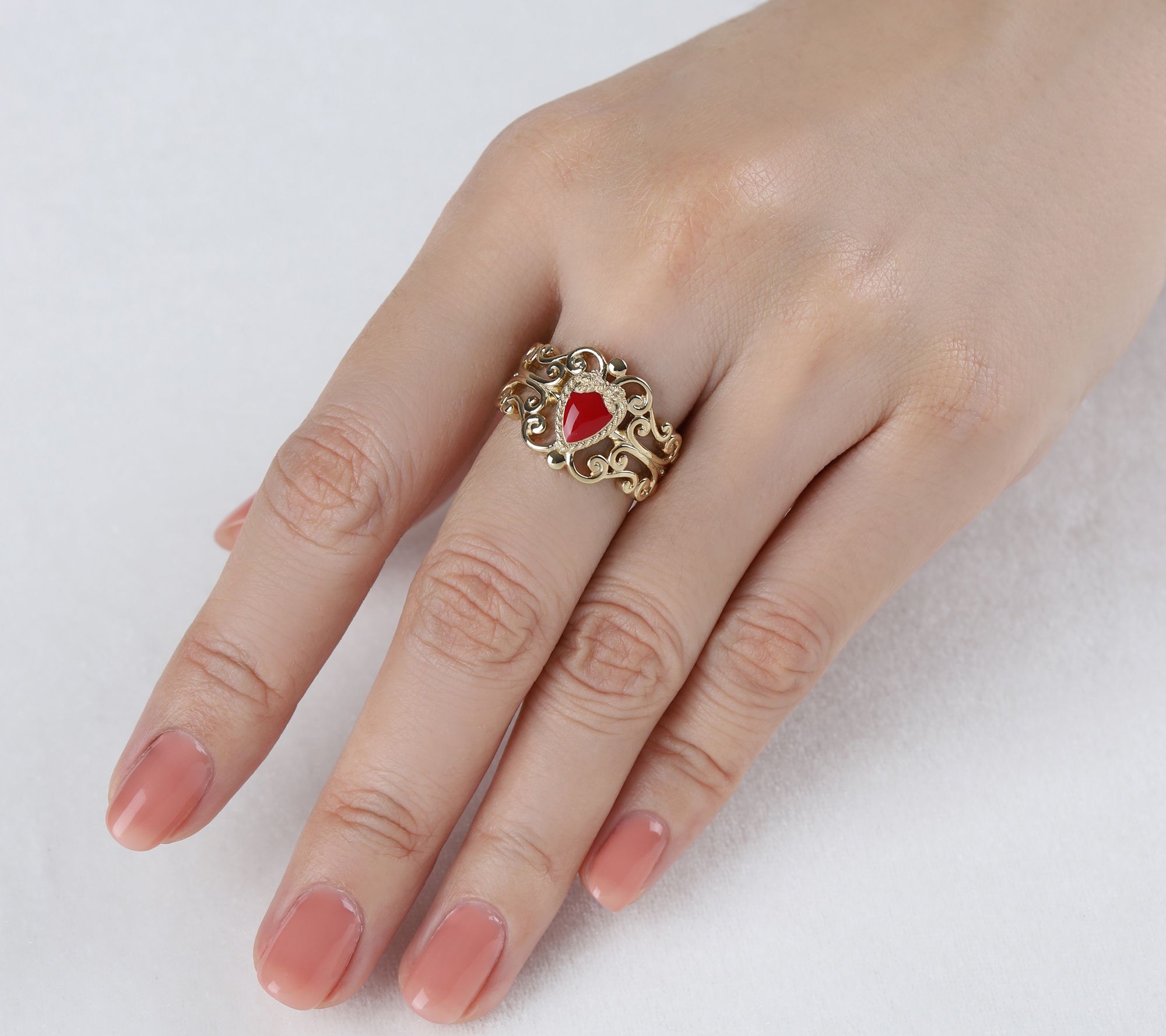 Goddaughters 14K Clad Love Knot Heart Enamel Renaissance Ring