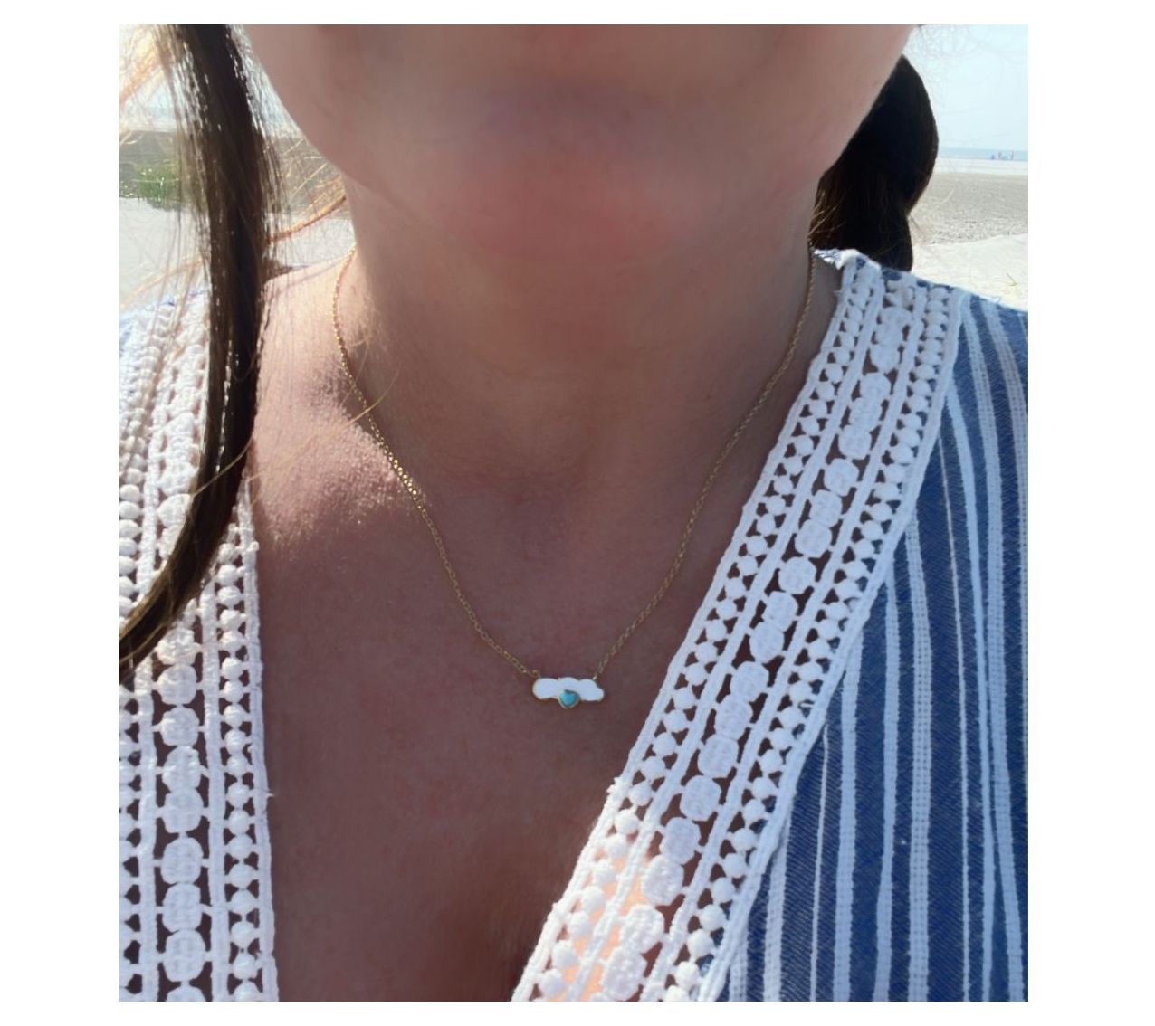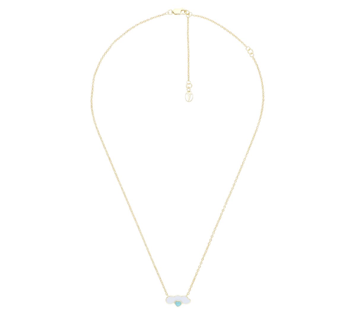 Enamel cloud; heart-shaped turquoise gemstone; "Dream" inscribed on back; cable link chain