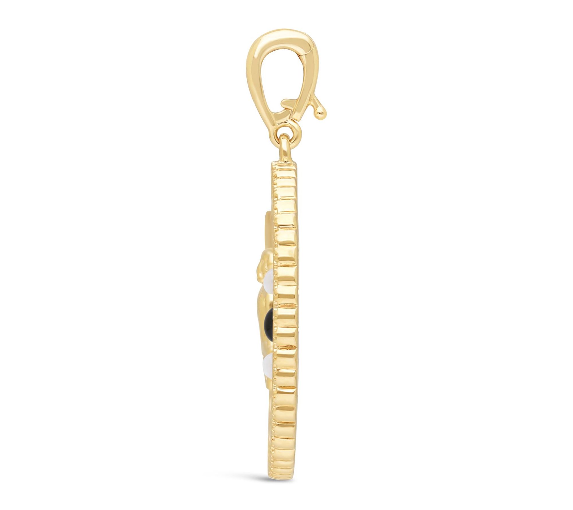 Find a moment of calm wherever you go with this Zen Dog medallion enhancer -- an uplifting pendant that celebrates the loyal, loving spirit dogs bring to our lives. Accented with onyx, carnelian, and mother of pearl, its meditating dog design offers a daily reminder to embrace peace, protection, and heartfelt connection. From Goddaughters.
