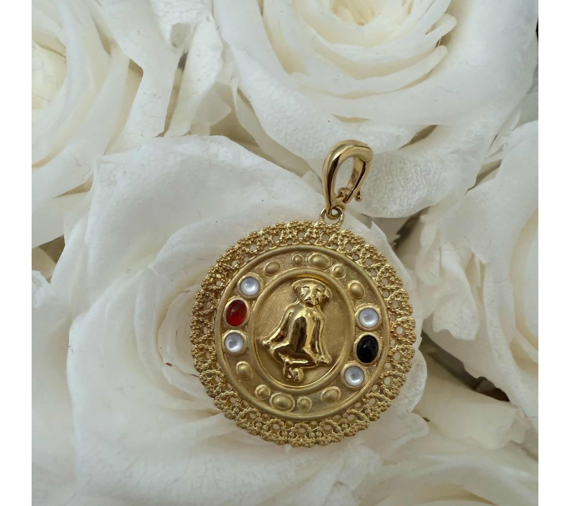 Goddaughters 14K Clad Zen Dog Gemstone Medallion Enhancer