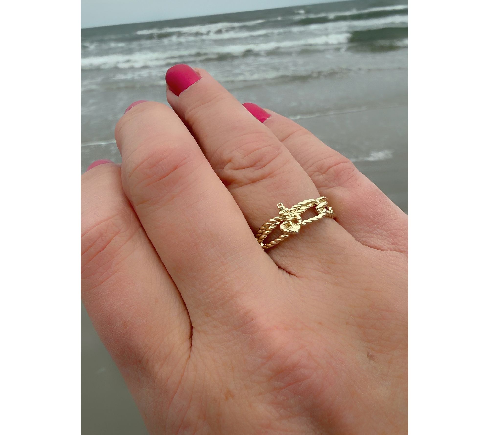 Set sail on new adventures or celebrate a special milestone with this anchor ring, finished in 14K gold clad that adds a warm glow to everyday looks. Whether you're commemorating a meaningful bond or adding a nautical flair for your next outing, this ring brings a lovely sense of connection and style. From Goddaughters.