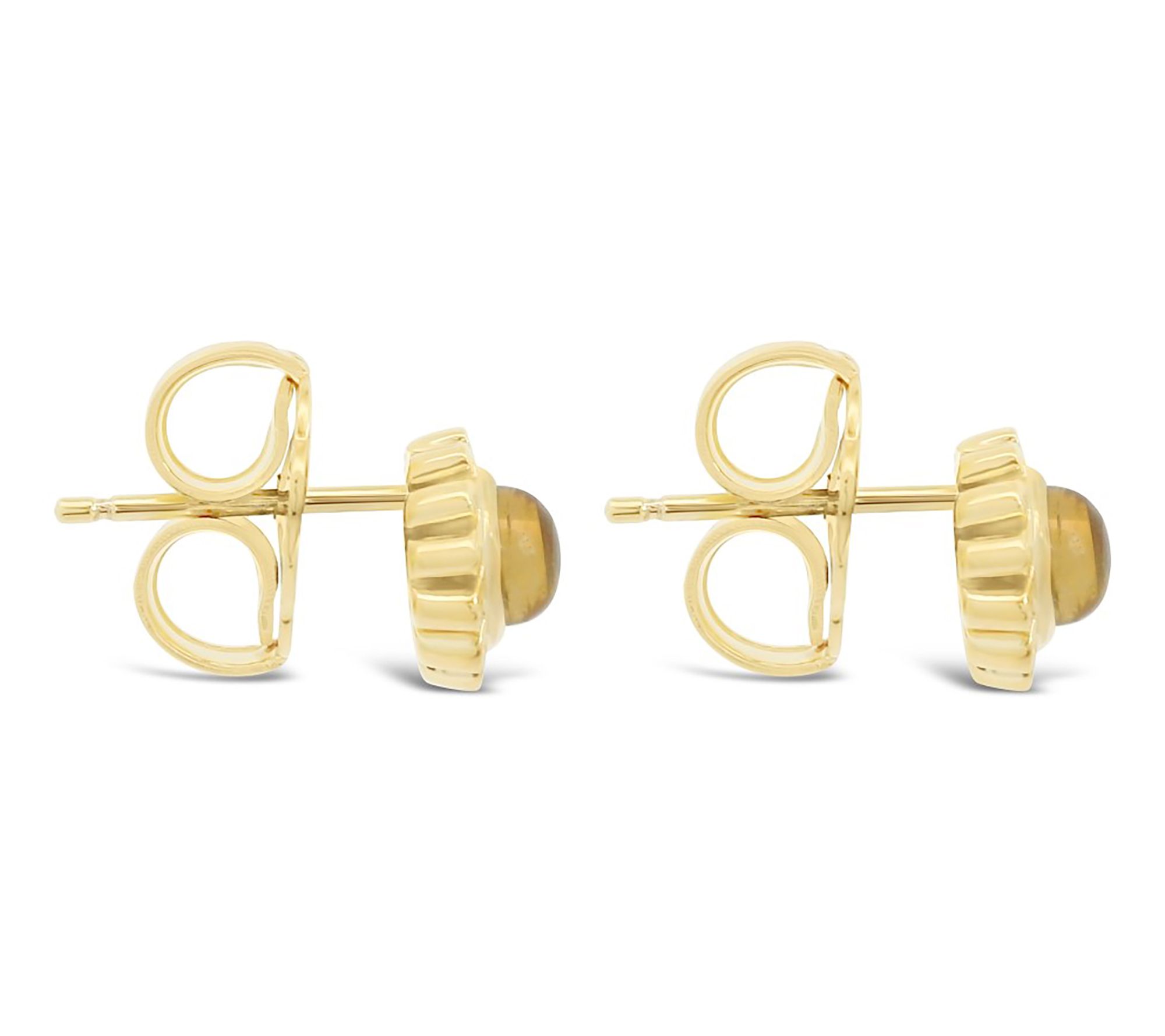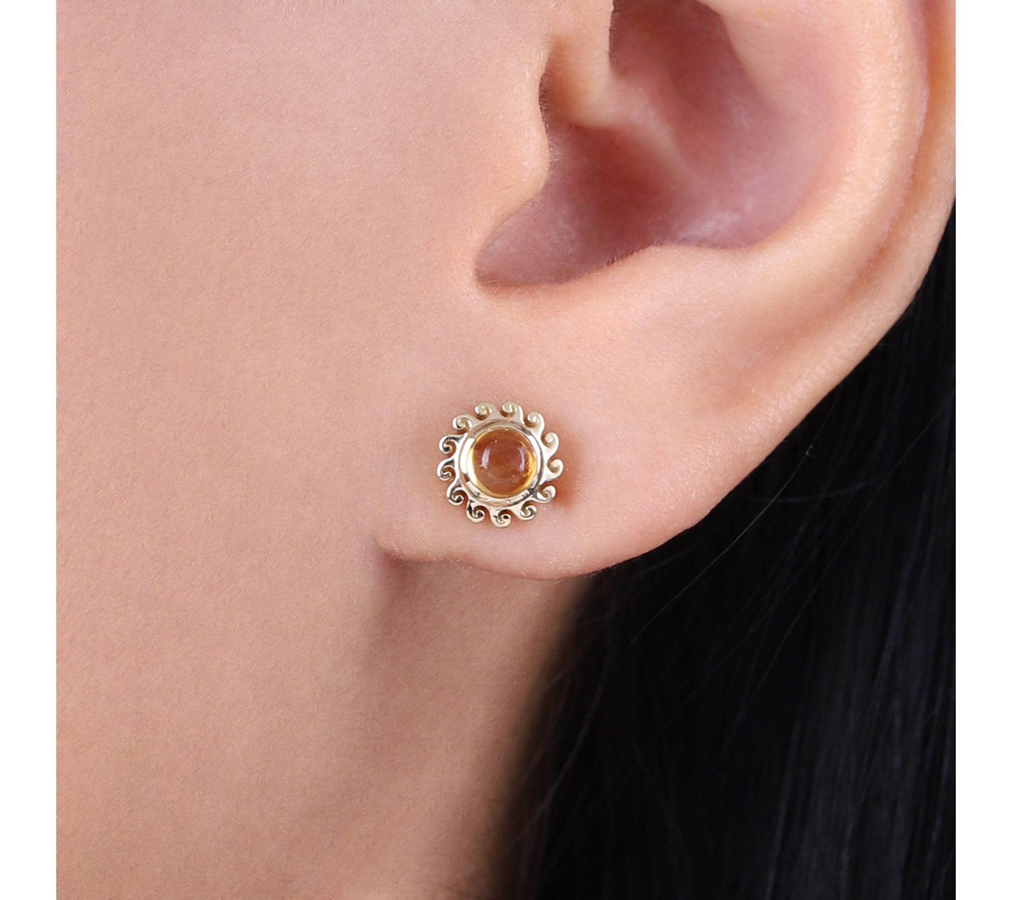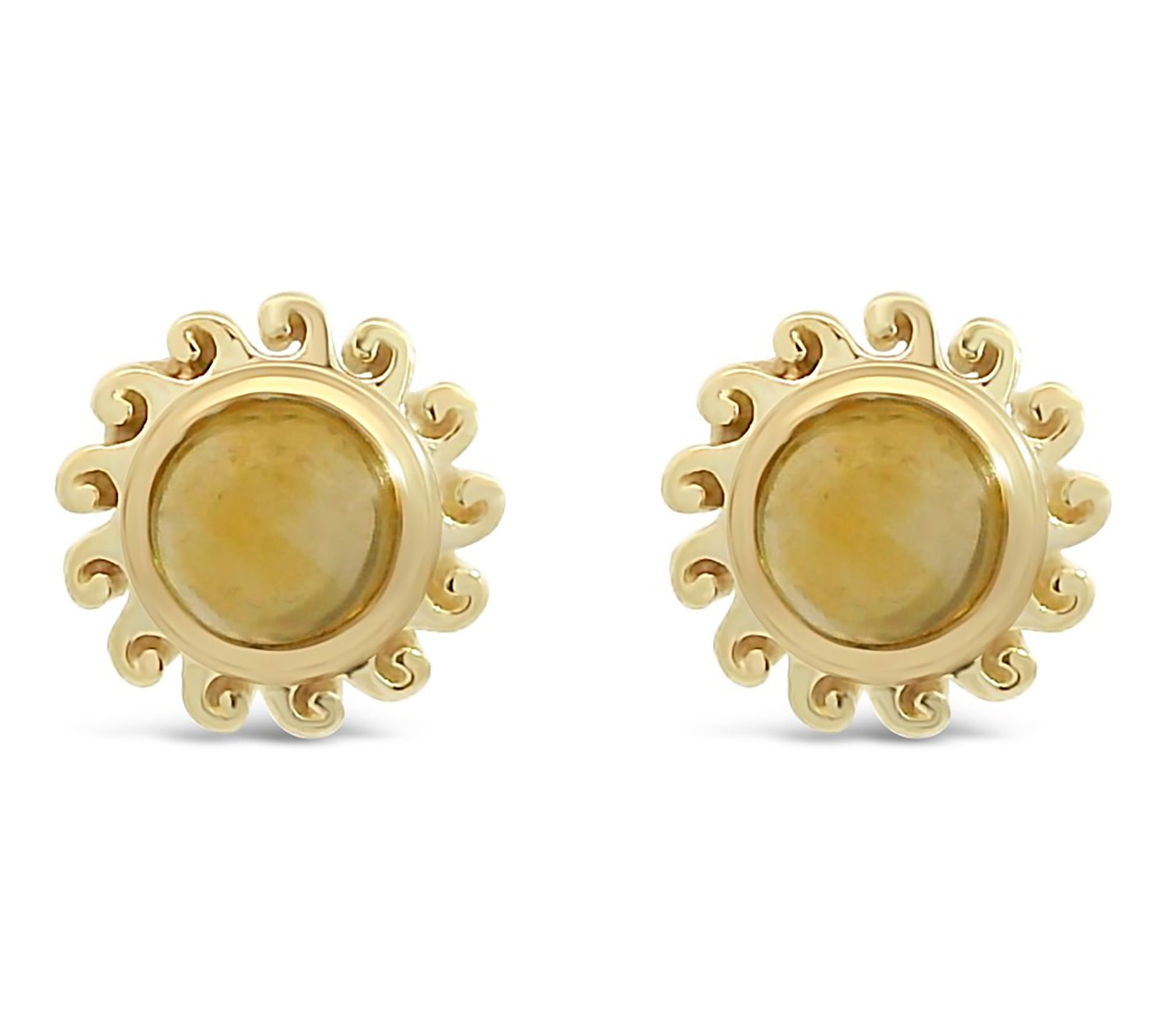 Let these sun stud earrings be your daily companion, radiating warmth and vibrant energy wherever you go. The brilliant citrine gemstone is beautifully set in 14K gold-clad sterling silver, offering a reminder of your inner strength and balance. Perfect for any occasion, the studs make a meaningful addition to your jewelry collection. From Goddaughters.