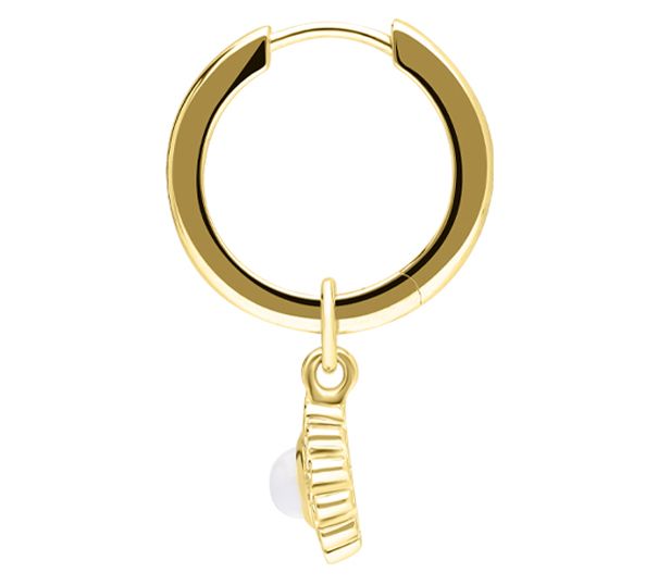 Swoon-worthy celestial style? Absolutely! These huggie hoop earrings are accented with moonstone sun charms for a brilliant ray of sophistication. From Goddaughters.