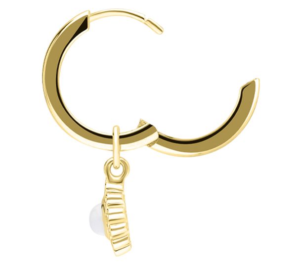 Huggie hoop earrings with dangling moonstone sun charms