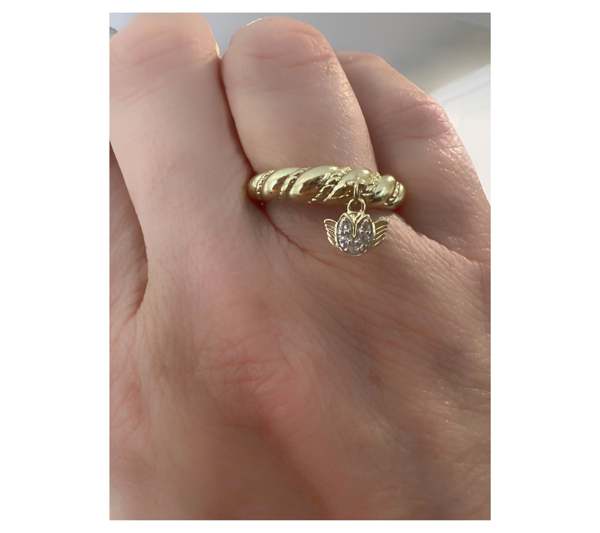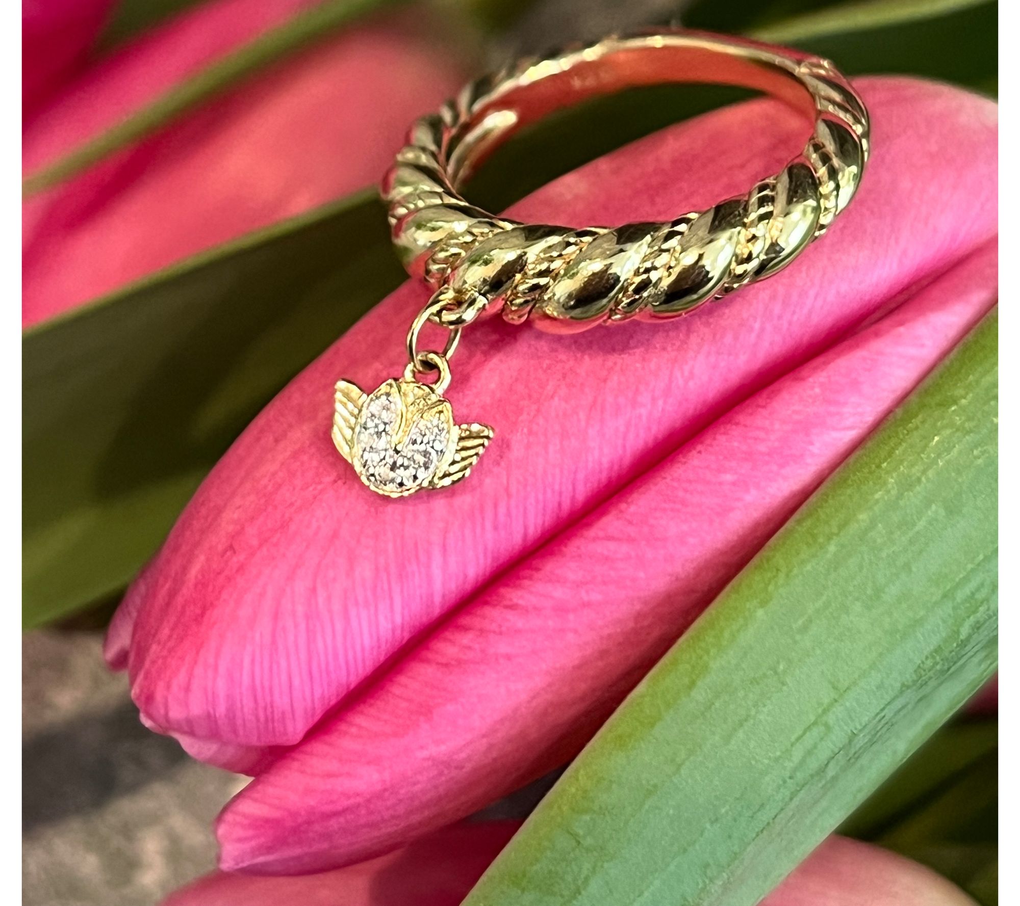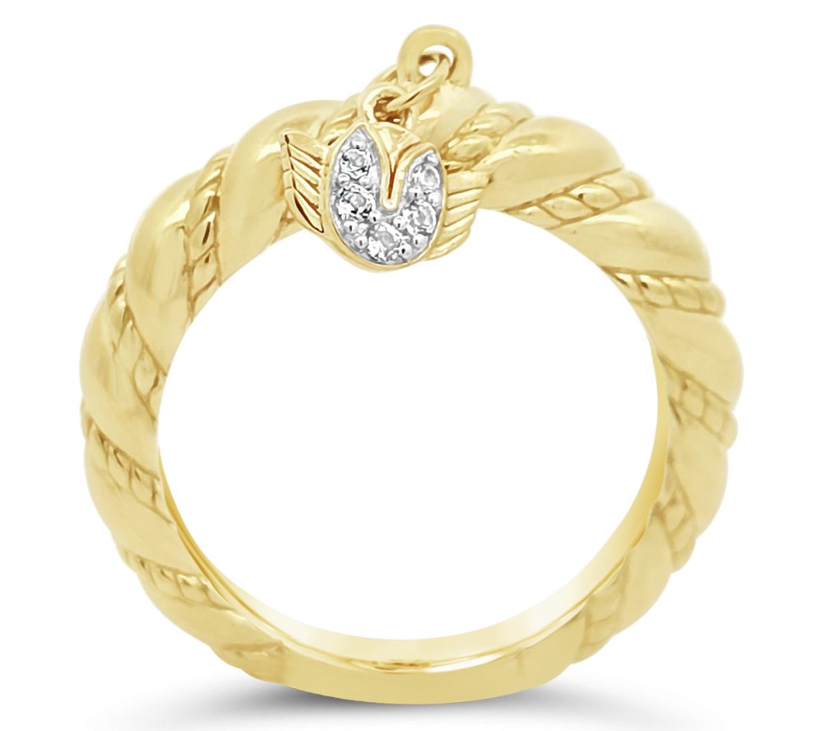 Sweet occasions -- graduations, family gatherings, or an everyday note of encouragement -- are even more memorable when celebrated with a symbol as meaningful as this tulip angel charm ring. Shimmering with white topaz accents, it brings a little joy and an uplifting message to every moment. From Goddaughters.