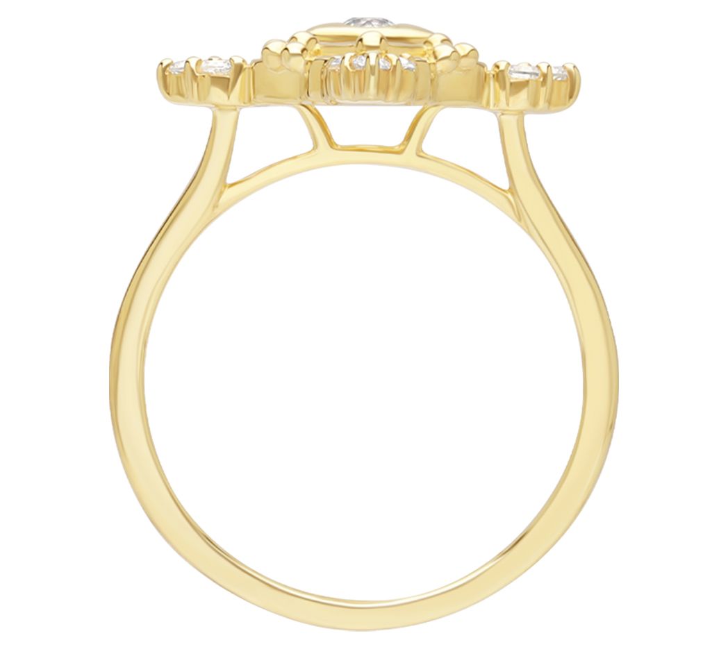 Embrace a touch of protection and style with this exquisite ring that combines the allure of white topaz with the symbolic evil eye, all set in a beautifully designed 14K yellow gold plating. It's a unique accessory that not only complements your wardrobe but also carries a deeper meaning. From Goddaughters.