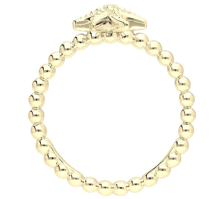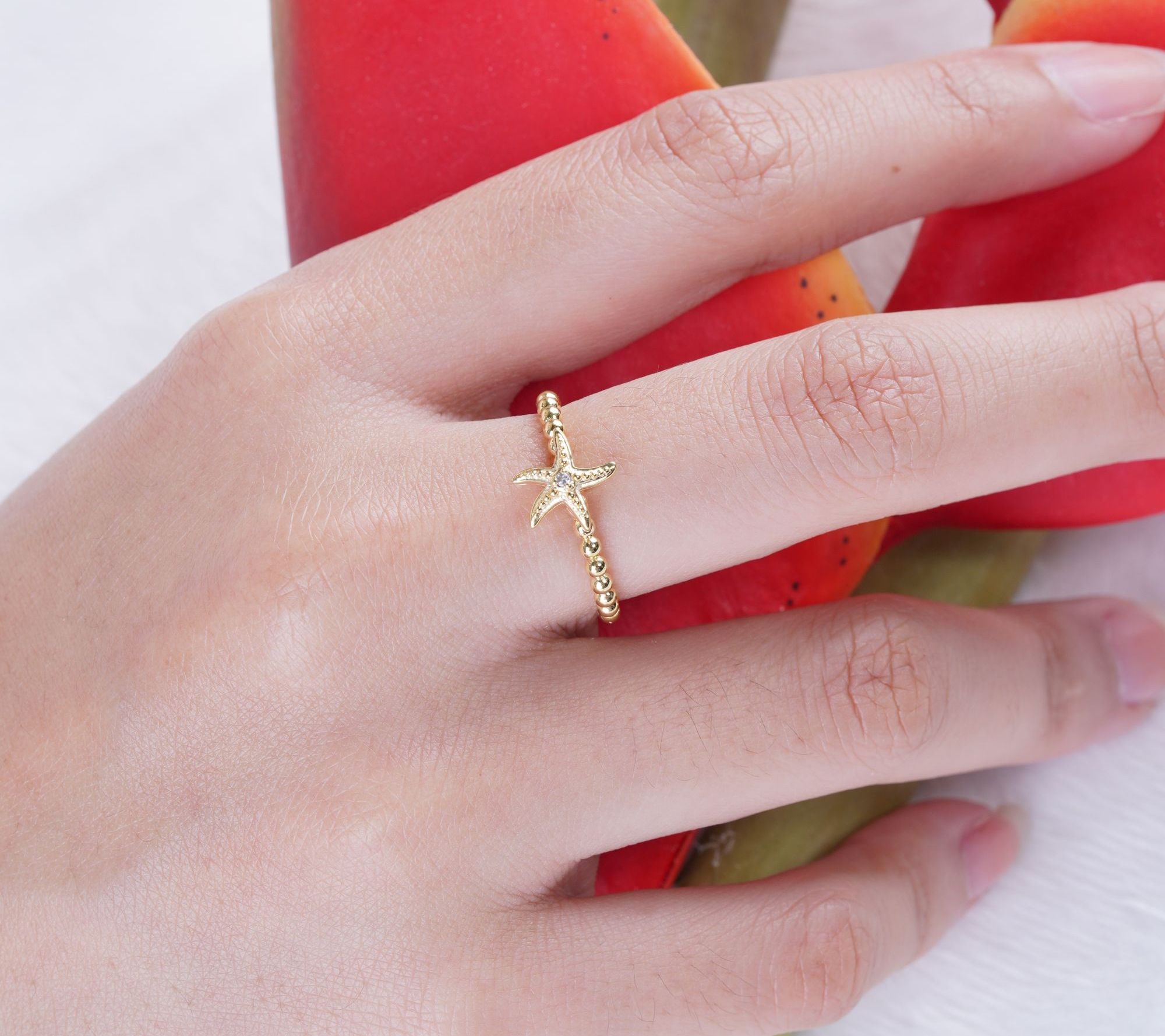 Express your inner surfer girl by slipping on this starfish ring embellished with a sparkly white topaz. From Goddaughters.