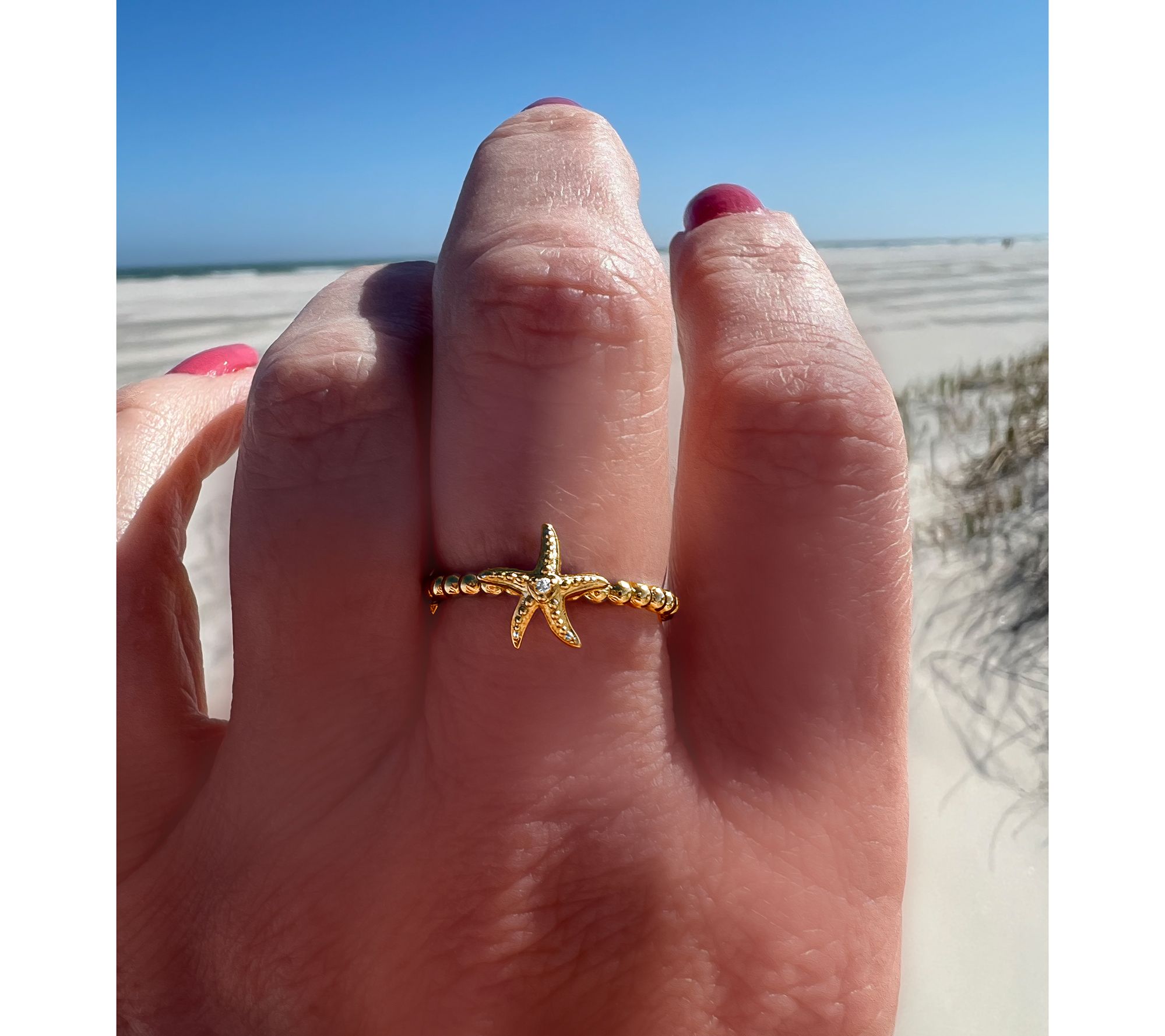 Goddaughters 14K Gold Clad White Topaz Mini Starfish Ring