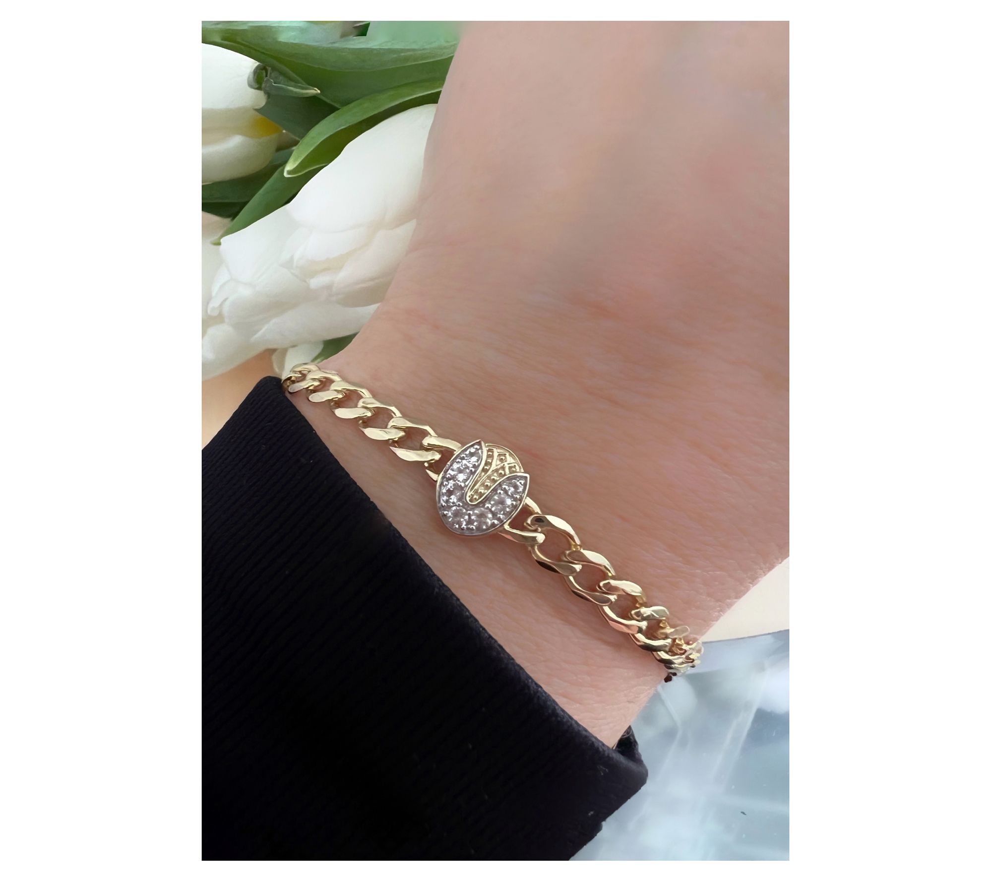 The Goddaughters 14K gold-clad white topaz tulip bracelet is a symbol of inner strength, growth, and resilience. This elegant piece features a tulip design that flourishes even when cut, representing determination and grace. Let this bracelet inspire you to find beauty and resilience in all circumstances. From Goddaughters.