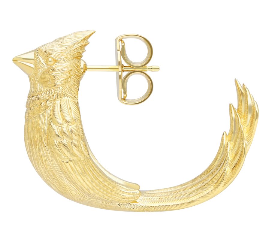 Goddaughters Detailed Cardinal Earrings, 14K Gold Clad
