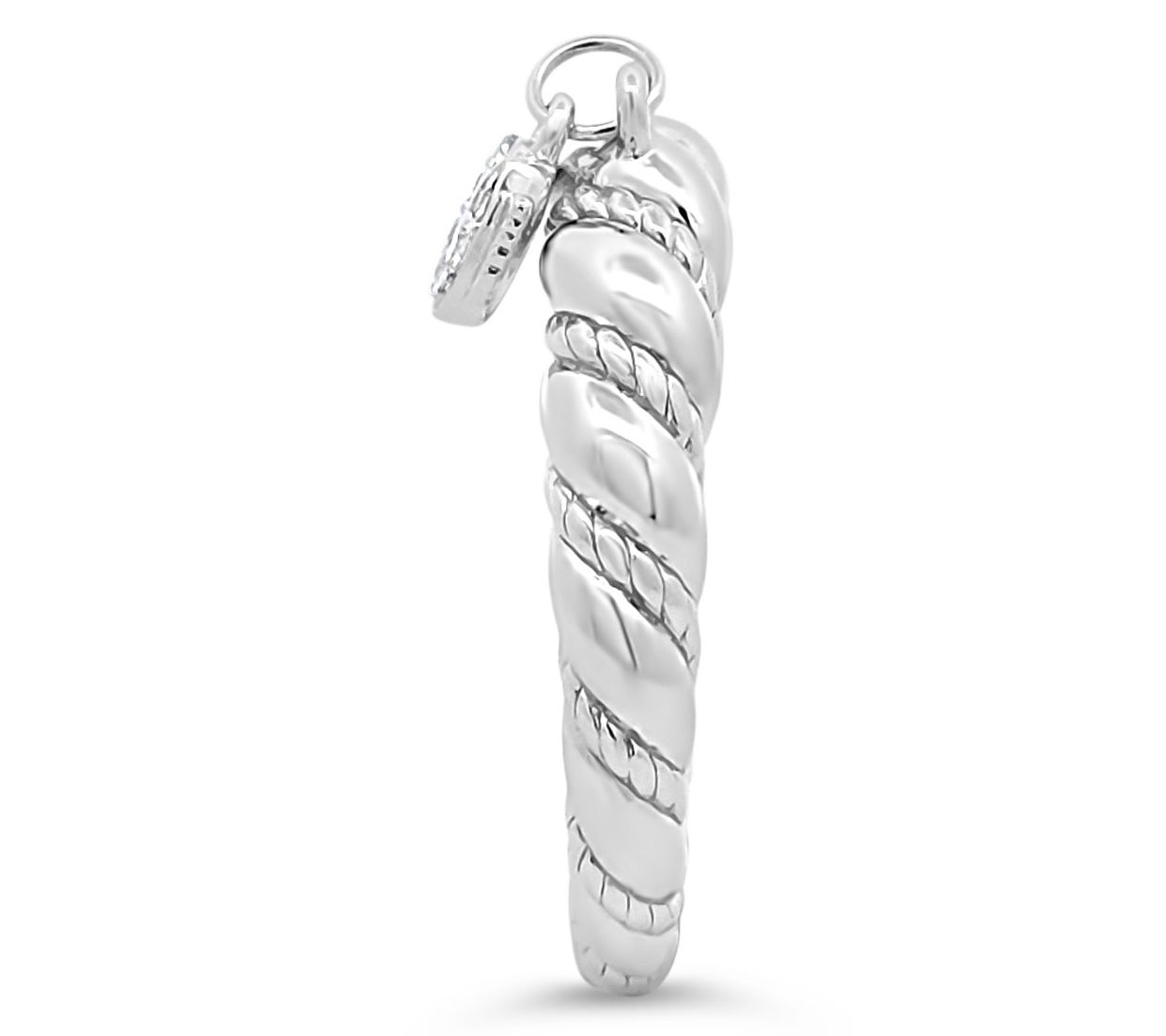 Tulip angel wing charm; round, pave-set white topaz gemstones