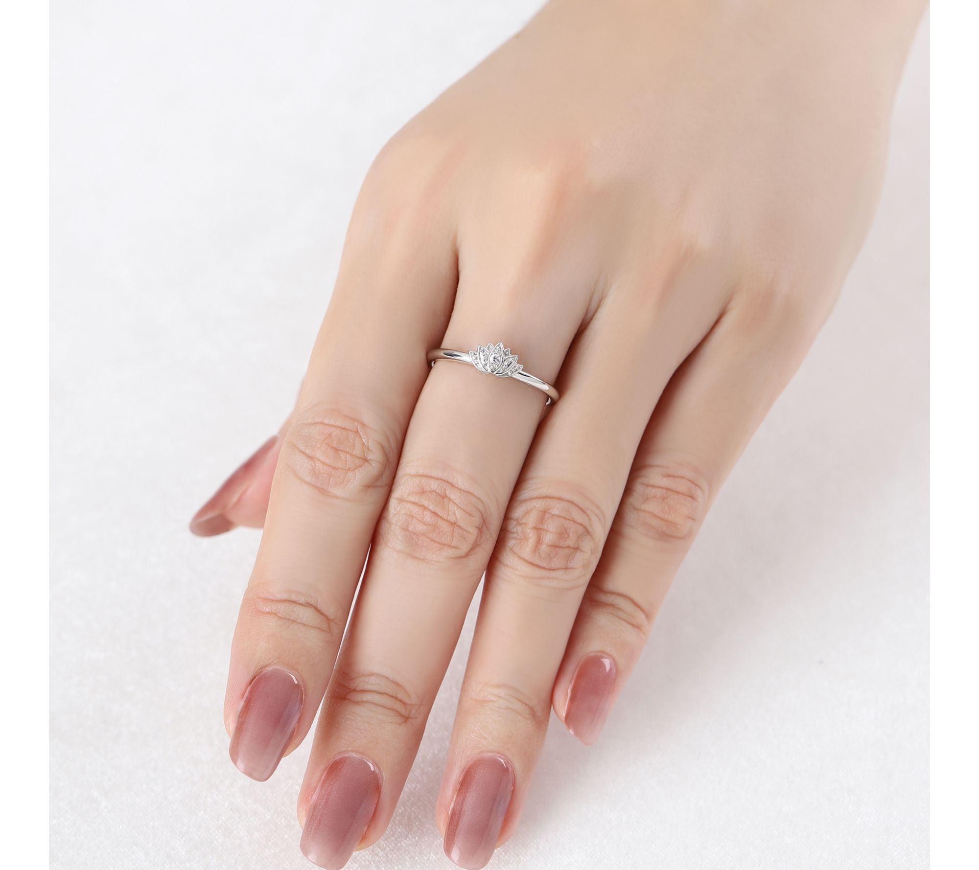 Round, pave-set white topaz; lotus-inspired design; polished finish
