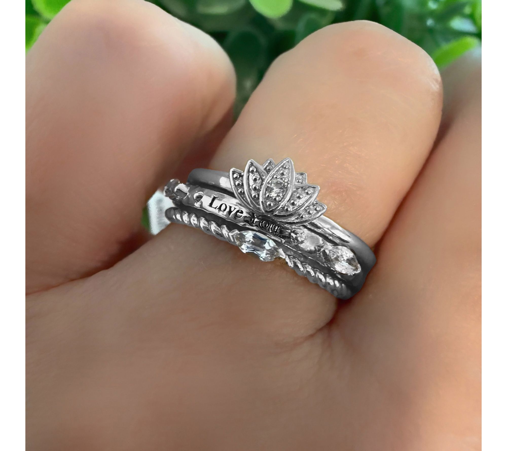 Celebrate growth and spiritual renewal with this sterling silver lotus ring, accented with round white topaz for a touch of gentle sparkle. Whether worn alone or stacked with other favorites, the lotus-inspired design brings a meaningful reminder of resilience and beauty to every day. From Goddaughters.
