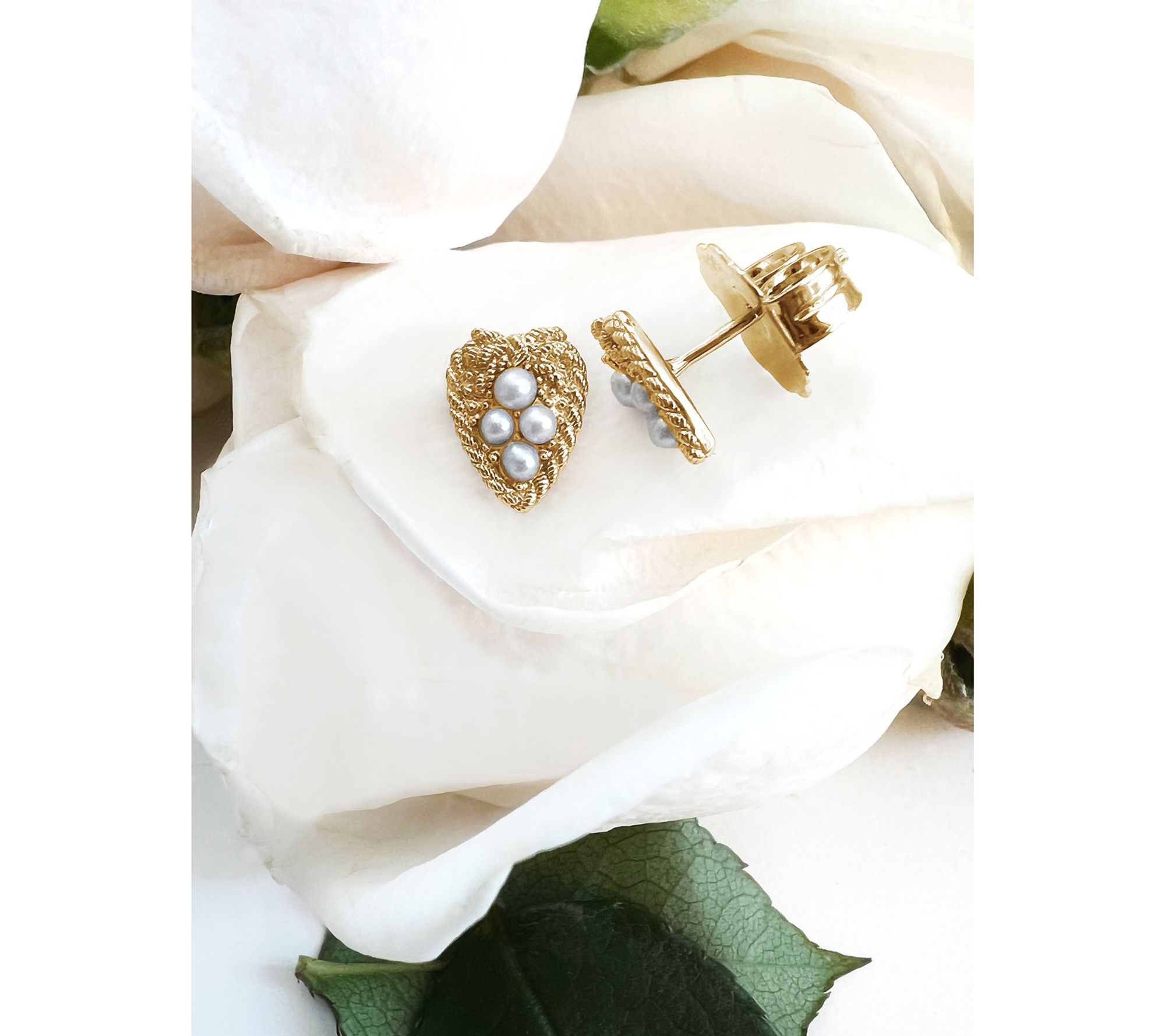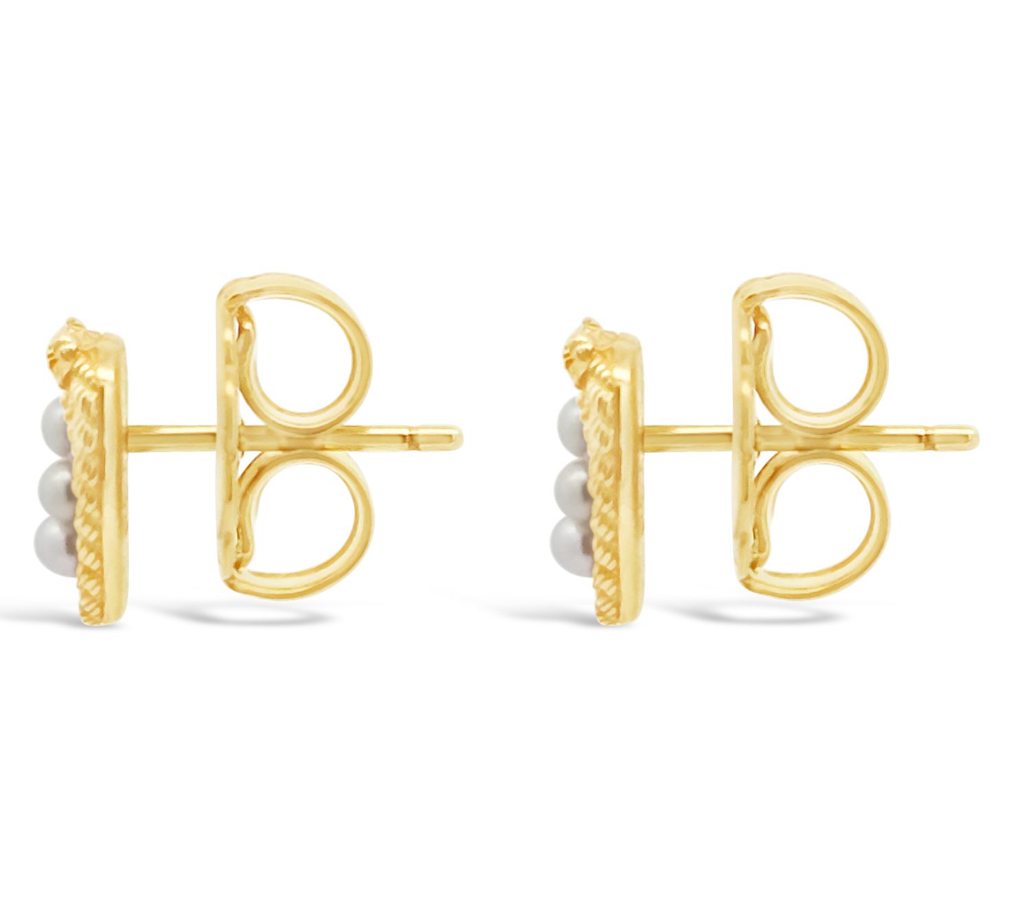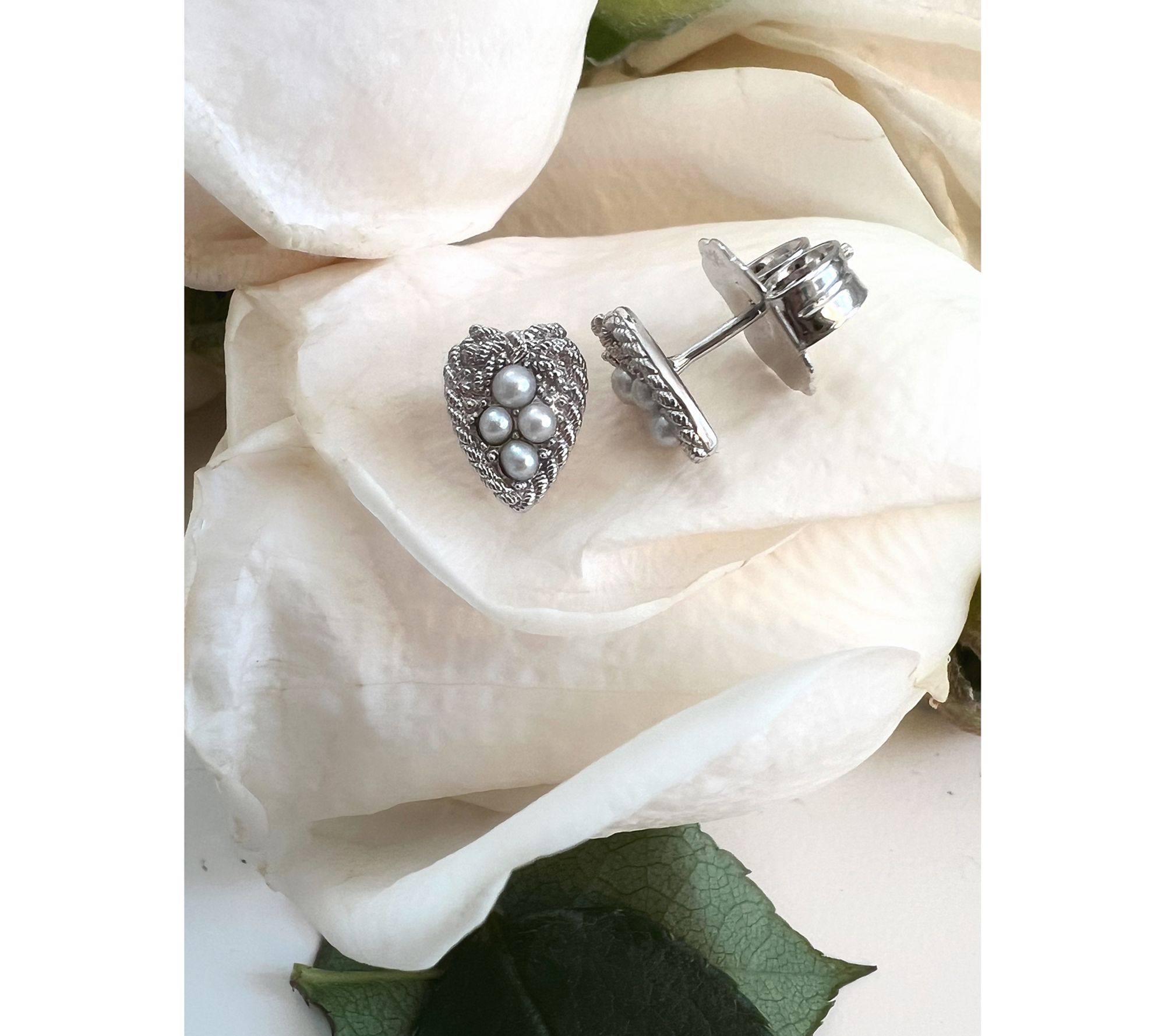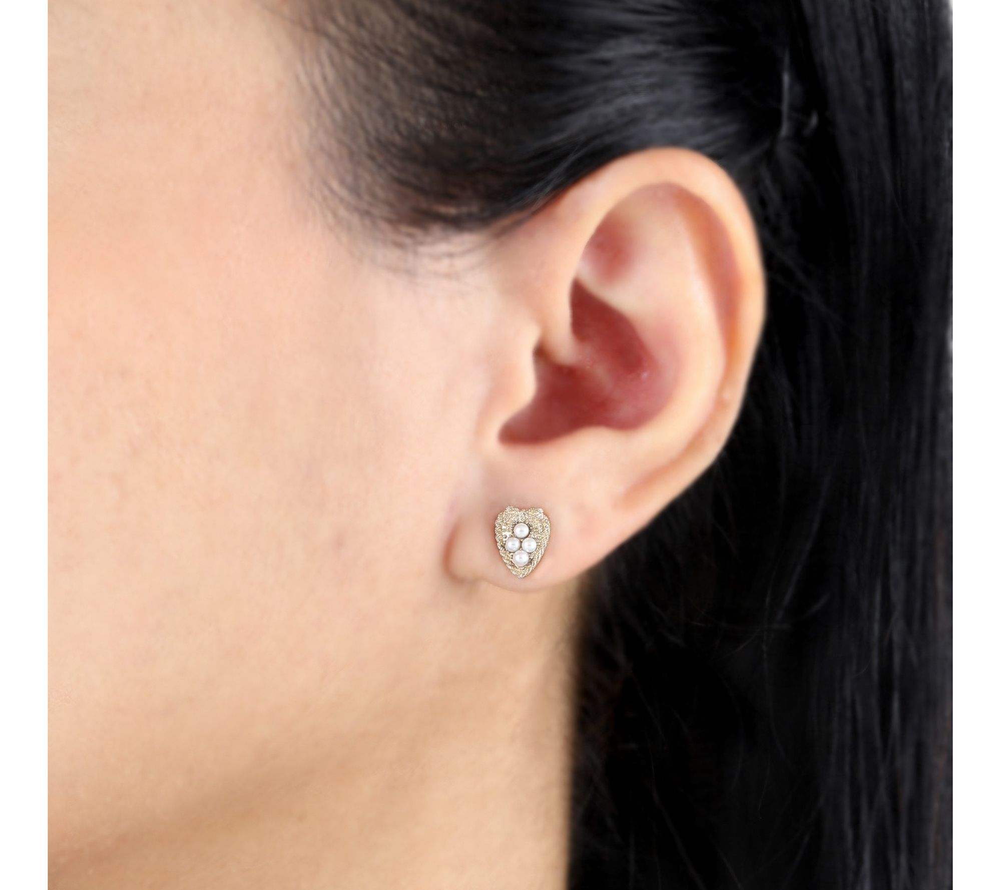 Heart-shaped love knot stud design; cultured freshwater pearls