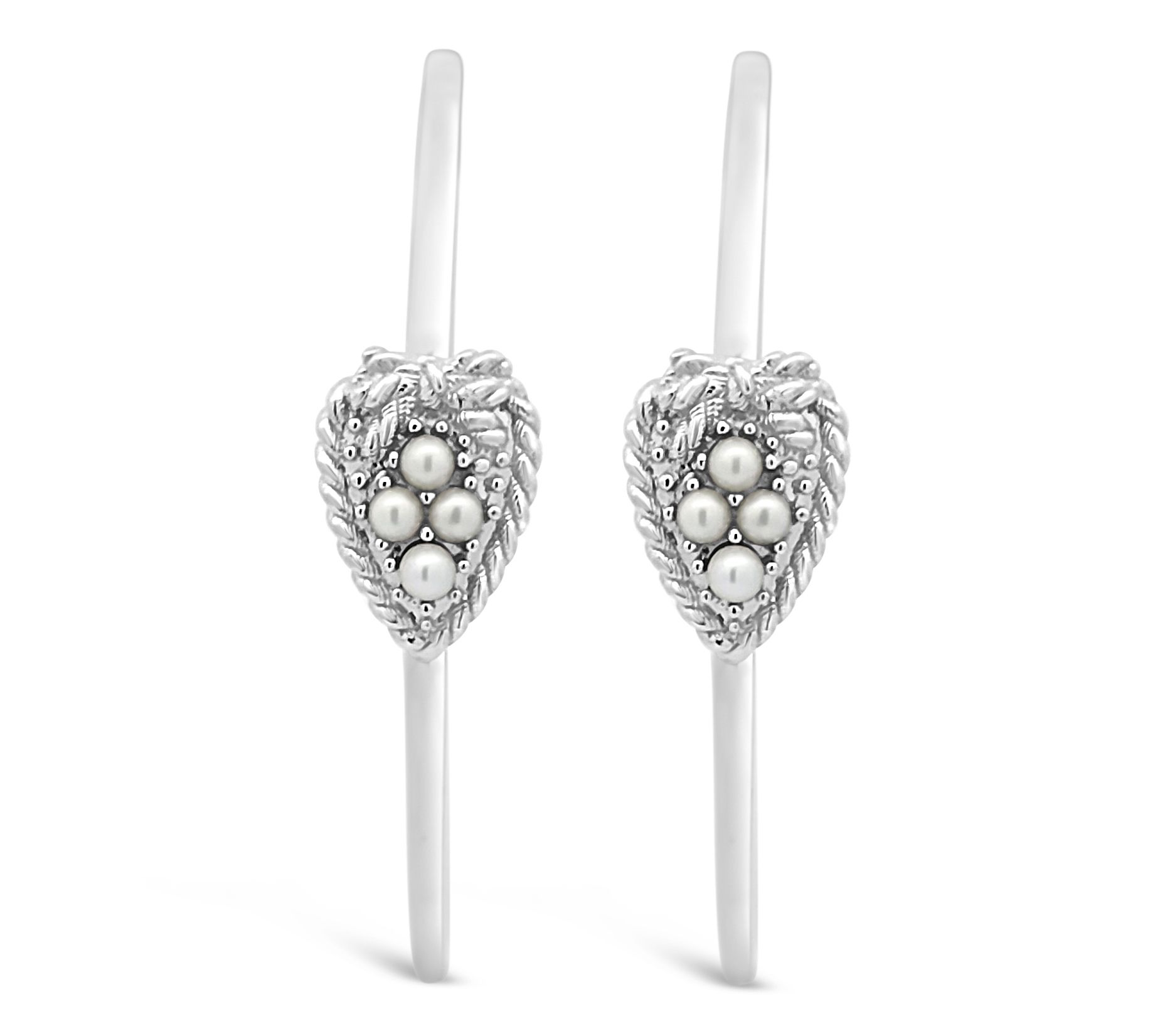 Love-knot hoop design; white to off-white cultured freshwater pearls; polished finish