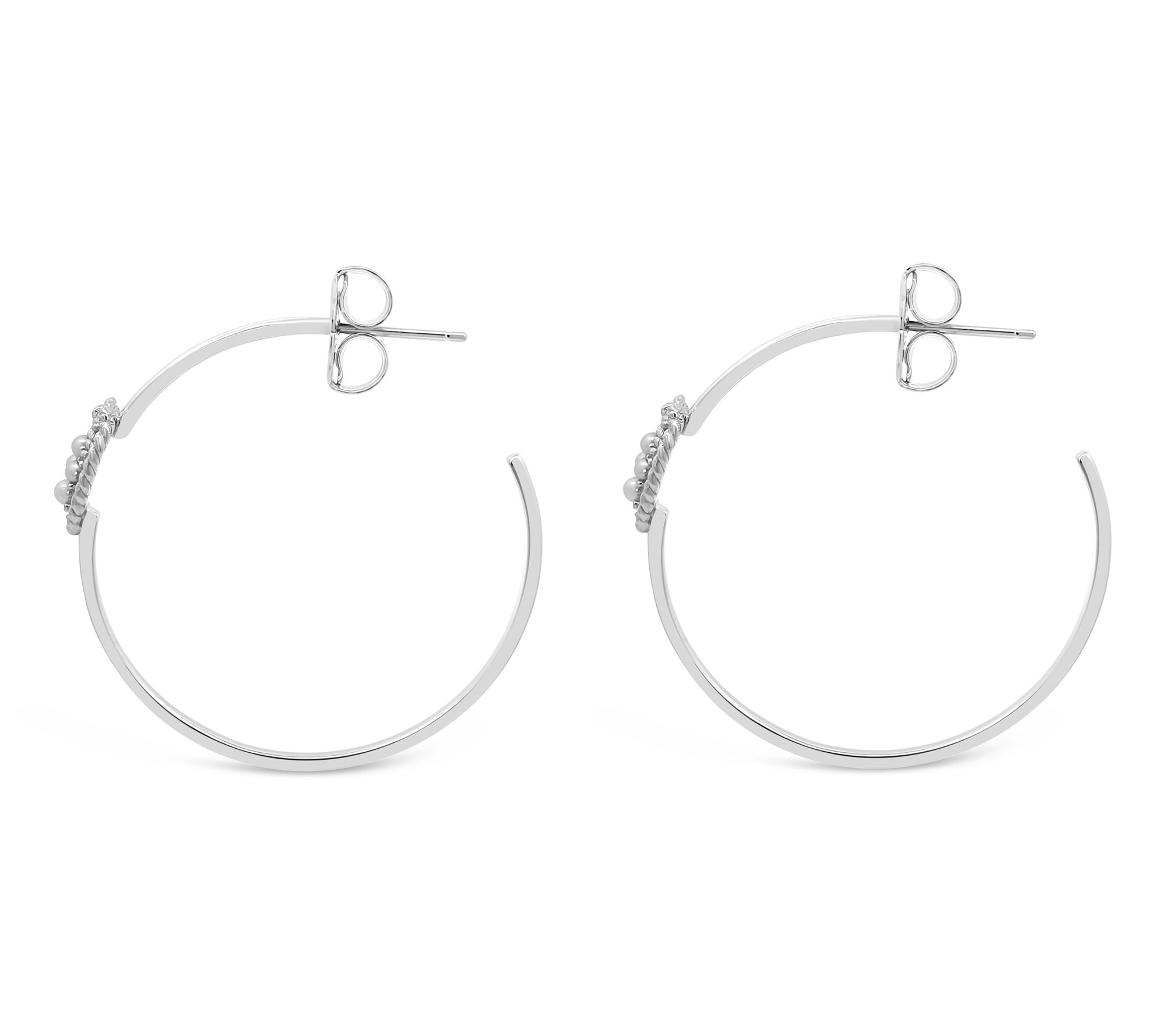 When a moment calls for something sentimental, these love knot hoops shine with meaning as well as luster. Cultured freshwater pearls nestle within sterling silver knots, creating a look that's ideal for remembering family, friendship, or milestones. Effortless to style, they make any day feel special. From Goddaughters.