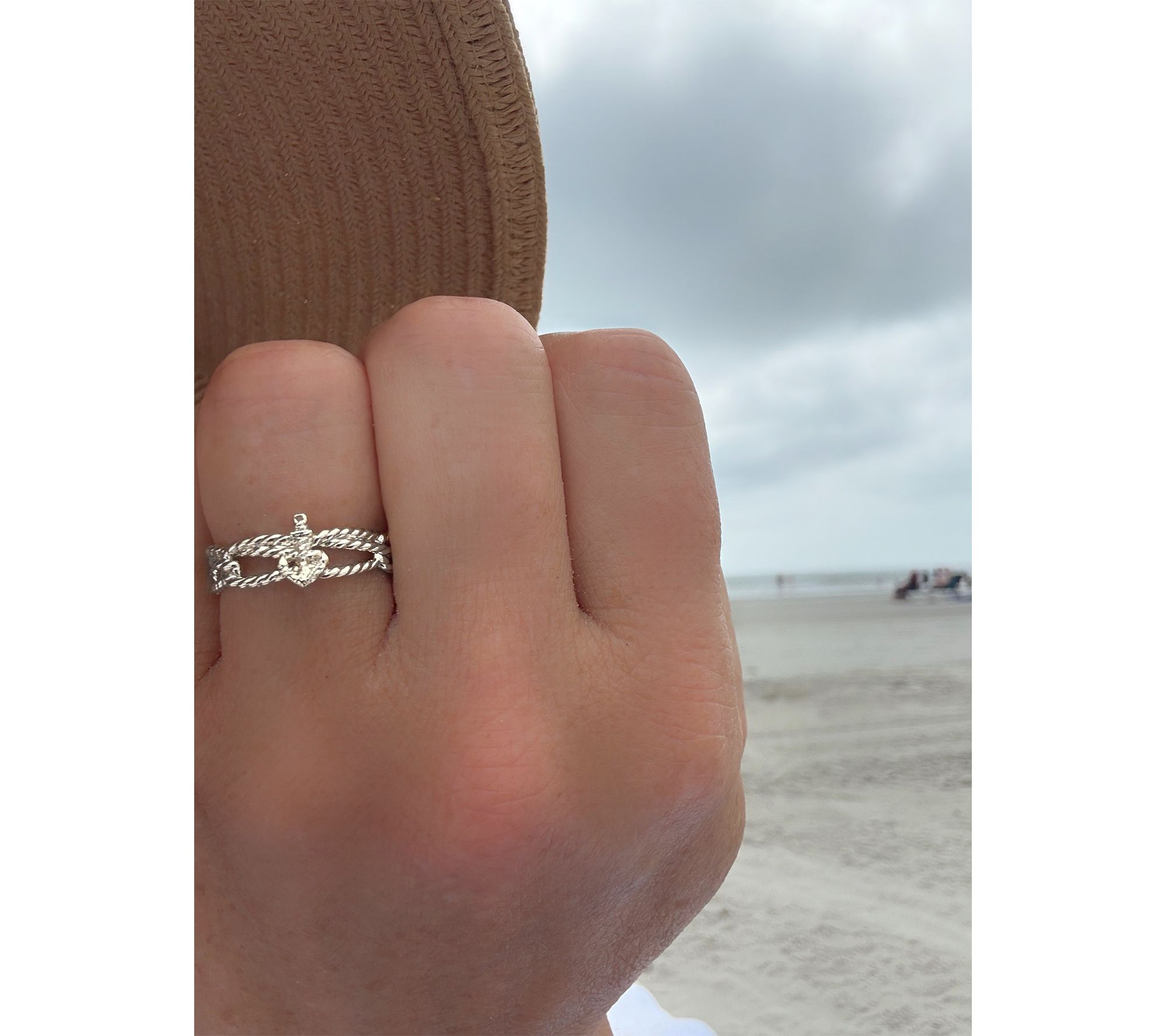 Wearing this sterling silver anchor ring, you carry a reminder of hope and grounding with you each day. Whether navigating a new chapter or celebrating an enduring bond, its meaningful design offers a touch of stability and inspiration wherever life takes you. From Goddaughters.