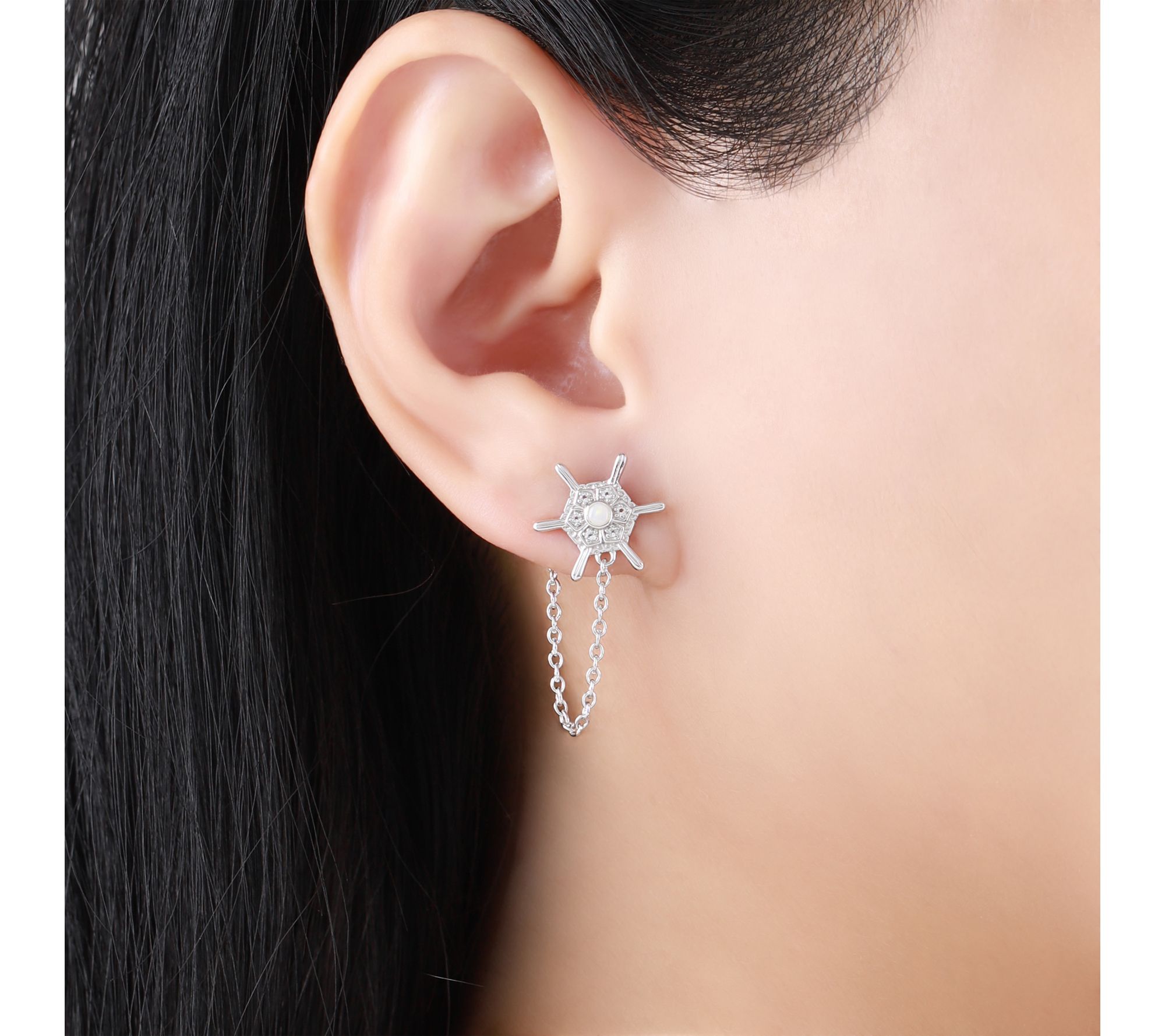 Let your style sparkle with these snowflake-inspired earrings, crafted in sterling silver and adorned with opal and white topaz accents. Whether you're dressing up for a holiday gathering or adding a touch of wintry magic to your everyday look, their delicate design celebrates individuality and the fleeting beauty of special moments. From Goddaughters.