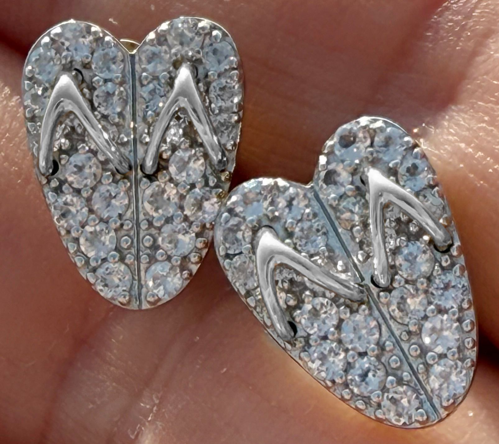 Goddaughters Sterling Silver White Topaz Flip Flop Earrings