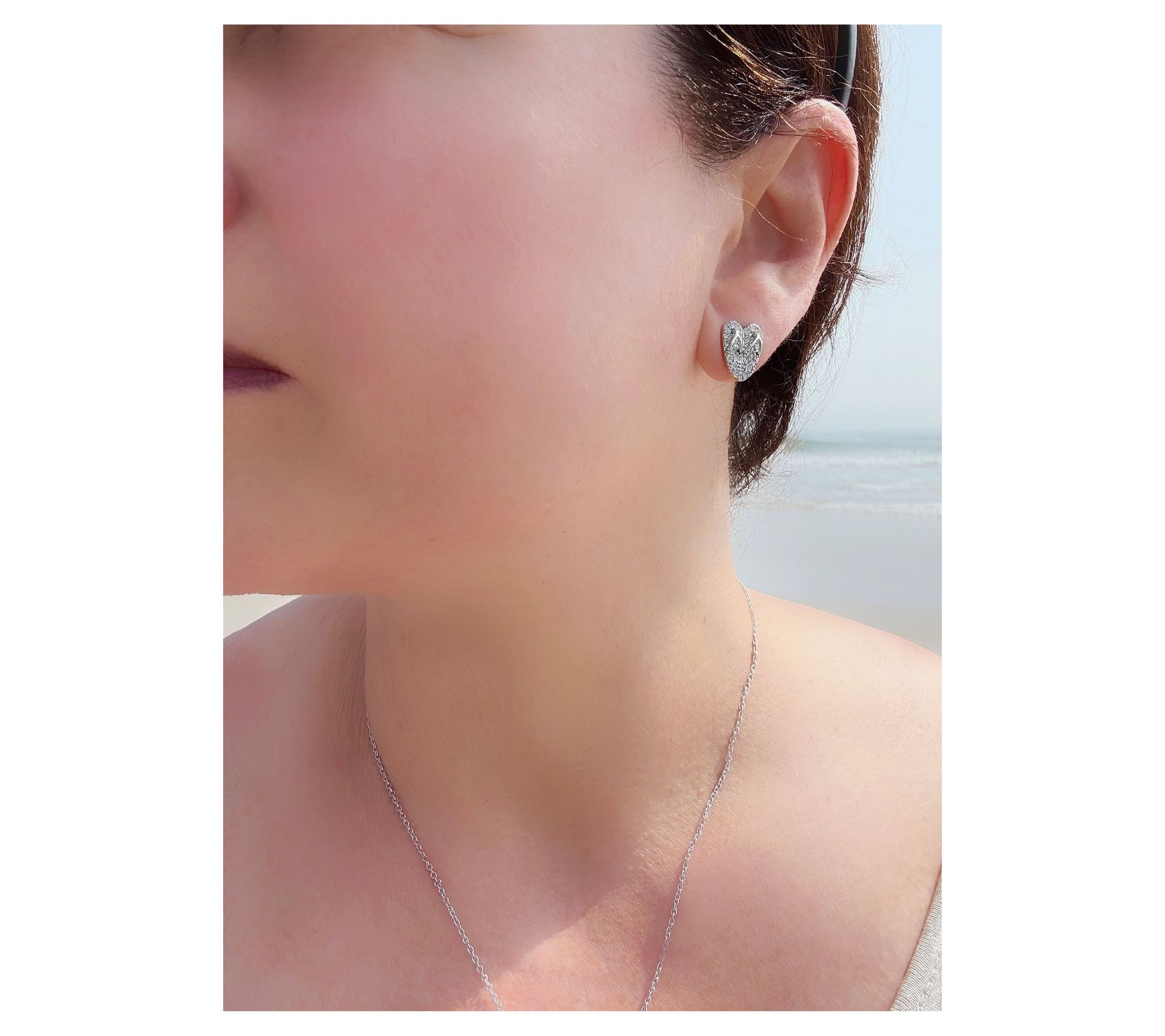 • Heart shape linked together with wishbone-style flip-flops; pave-set white topaz gemstones