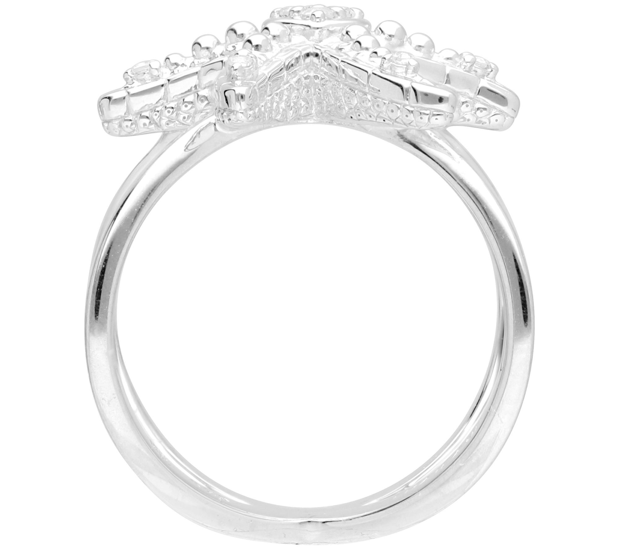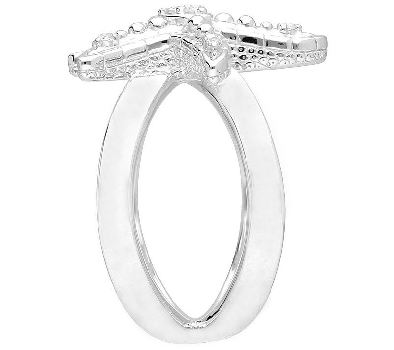Bring the enchantment of the sea to your look with this beautiful starfish ring that features a split shank and shimmering white topaz gemstone accents. From Goddaughters.