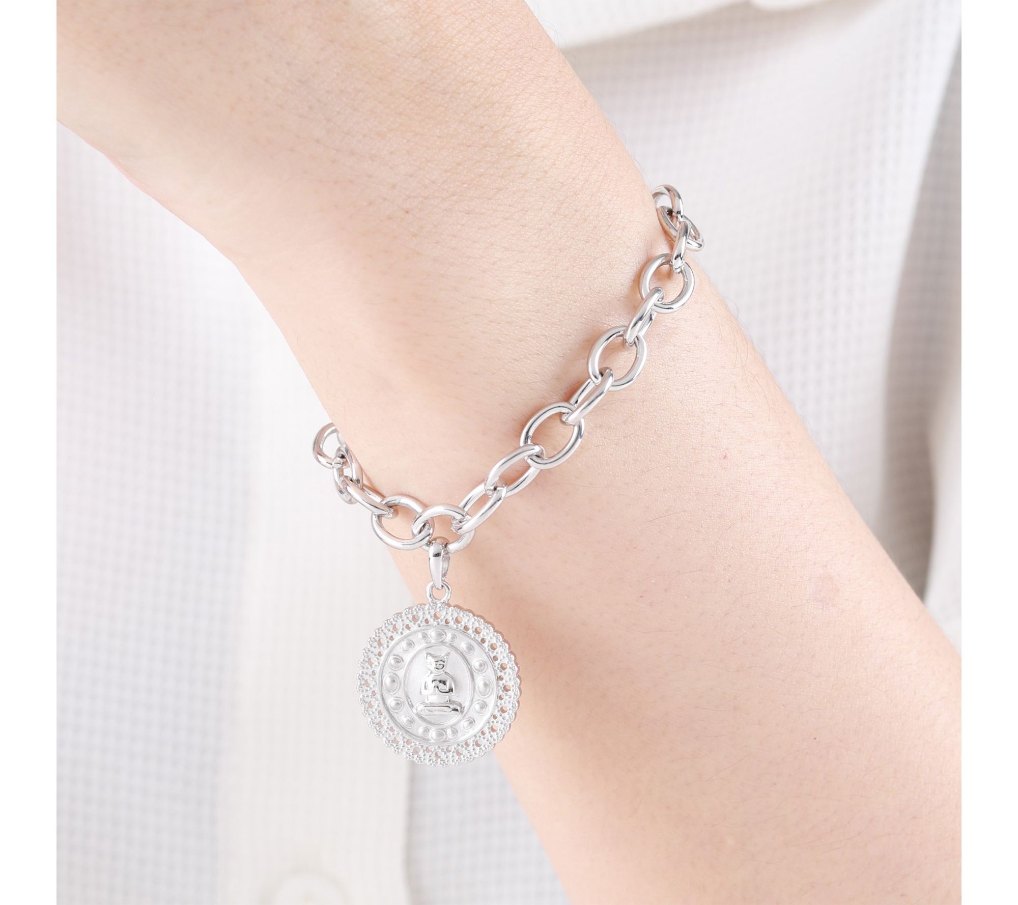 Goddaughters Sterling Silver Zen Cat Charm Bracelet