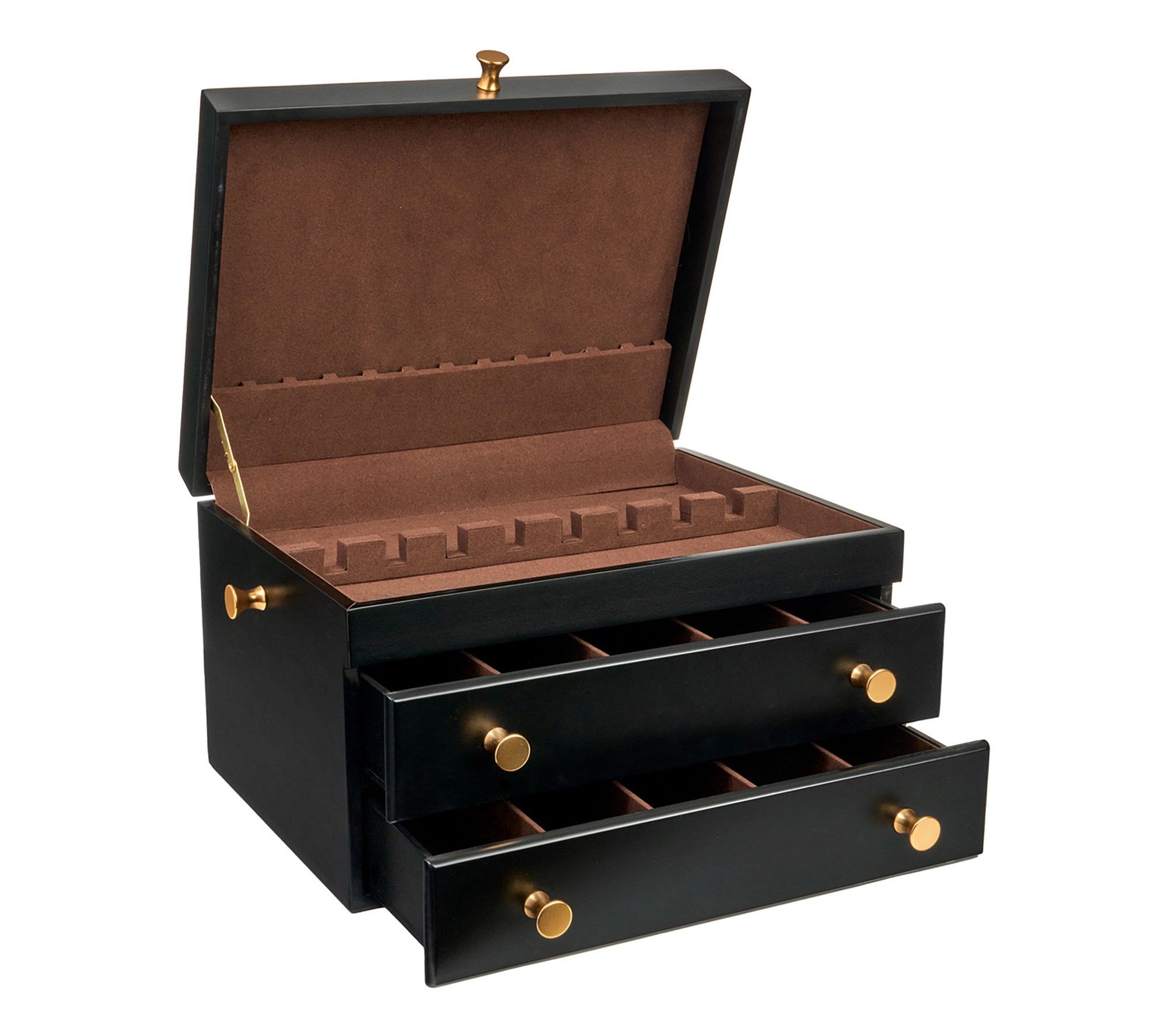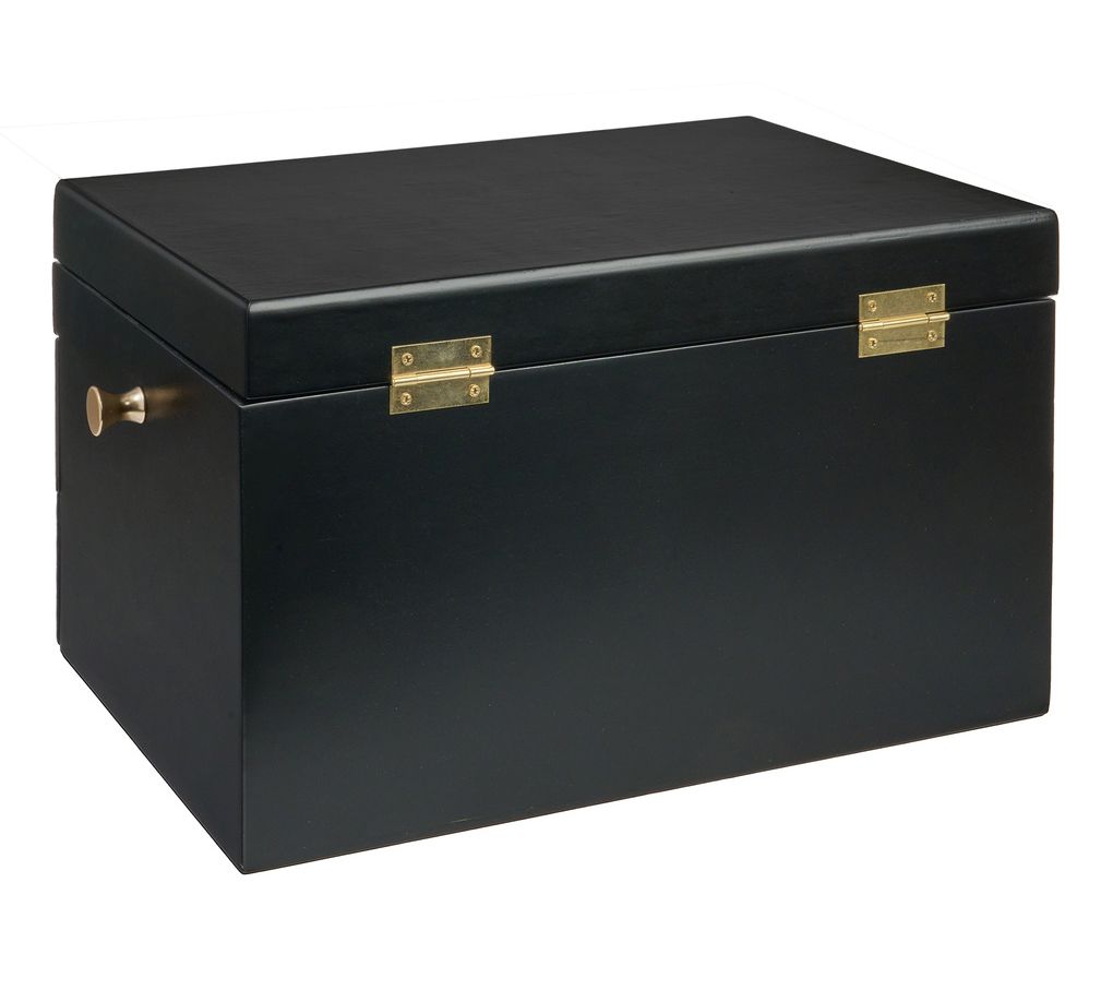 Easily store your favorite utensils with this beautiful Godinger flatware chest. Lift the lid to unveil two sections: a top section to tuck in steak knives and a bottom section that separates spoons, forks, and more. Pull out the drawer underneath for even more storage for your serving pieces. From Godinger.