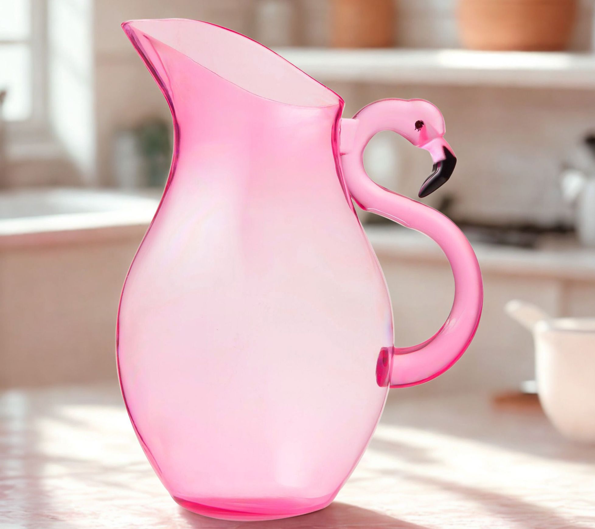 Whether you're hosting brunch on the patio or enjoying a refreshing drink by the pool, this playful pitcher brings a vibrant spirit to your table. The flamingo-inspired handle adds a lively accent, making every pour a conversation starter. Its generous size is great for mixing up lemonade, iced tea, or your favorite punch for friends and family. From Godinger.