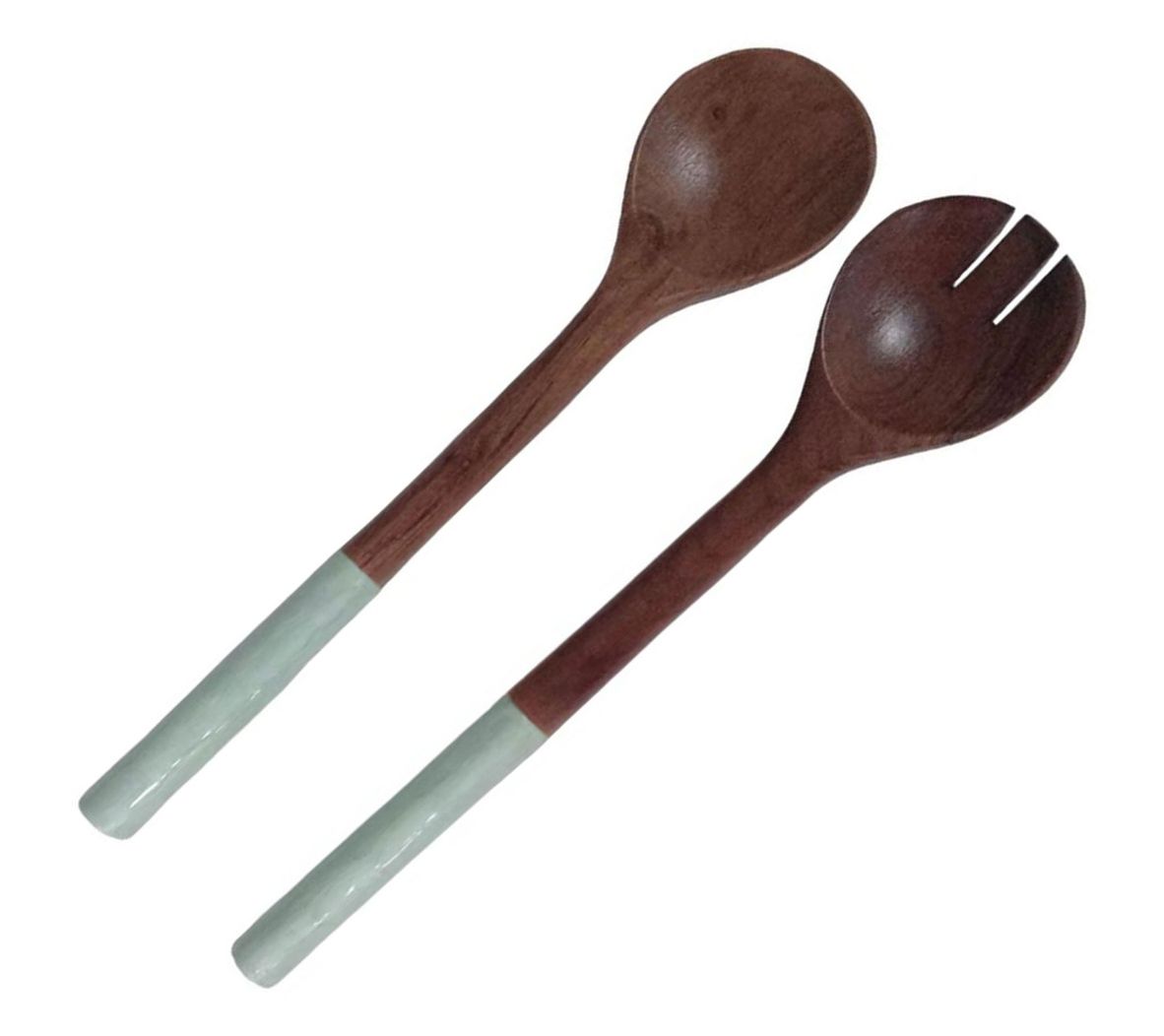 Elevate your dining experience with this salad server set. Adorned with intricate white enamel handles and a unique, layered Capri design, the set lends casual sophistication to your table setting. From Godinger.