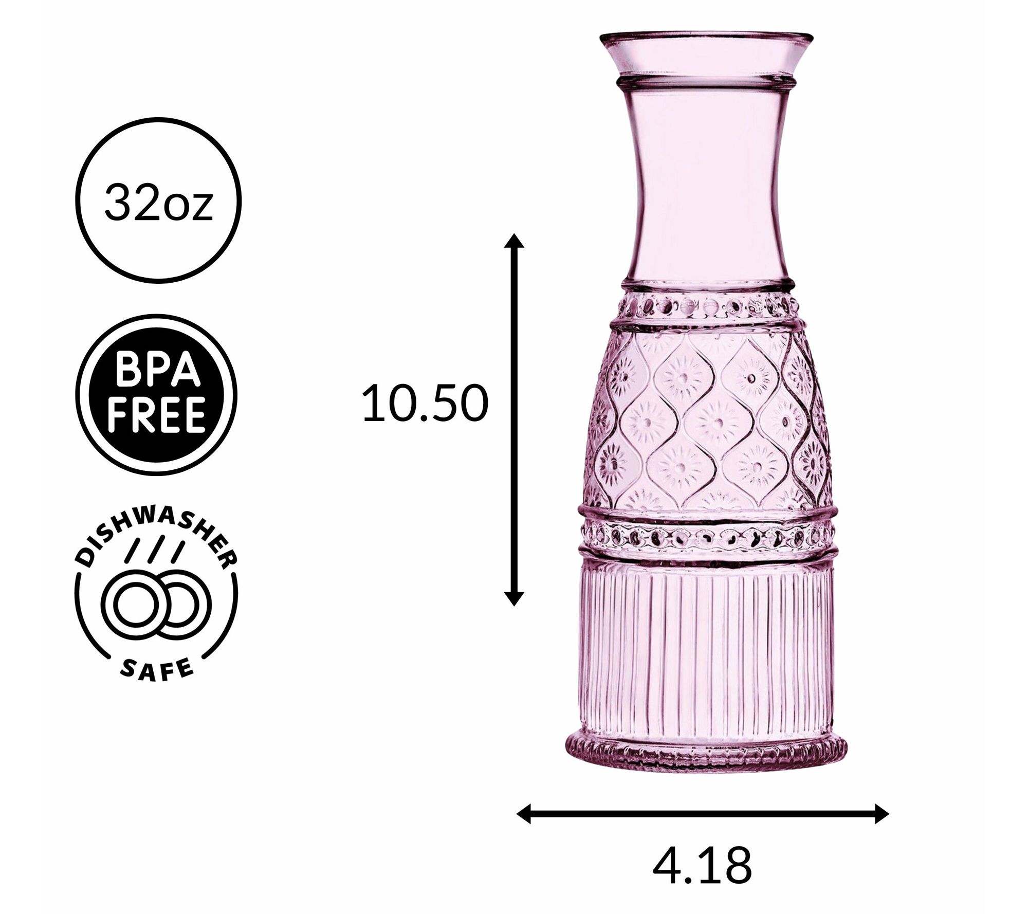 Elevate your dining experience with the Godinger Claro Pink Carafe. Inspired by Victorian-era embossed glass, this carafe merges bold hues with intricate textures for a contemporary twist. Perfect for both elegant soires and everyday gatherings, it adds a touch of sophistication to any occasion. From Godinger.