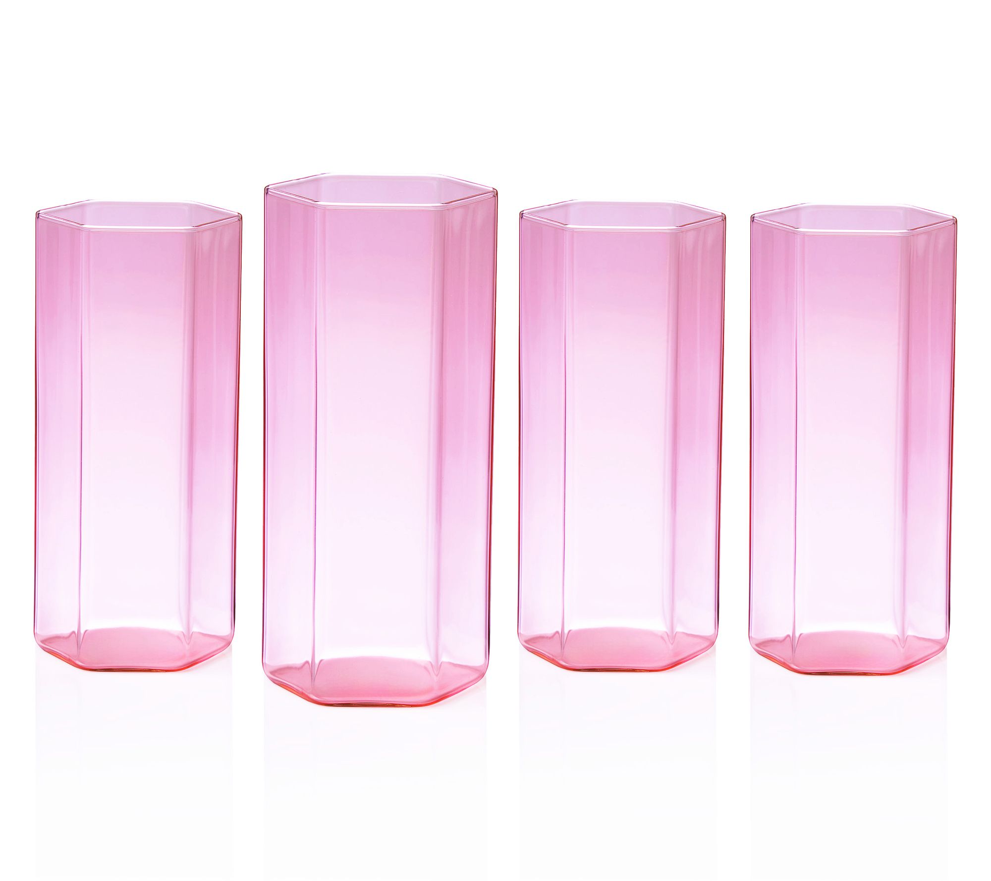 Raise a glass to style and sophistication with these highball glasses. Their hexagonal design, crafted from exquisite borosilicate with vibrant hues, adds a luxurious touch to your casual gatherings or upscale dinners. Impress your guests with this eye-catching addition to your drinkware collection. From Godinger.
