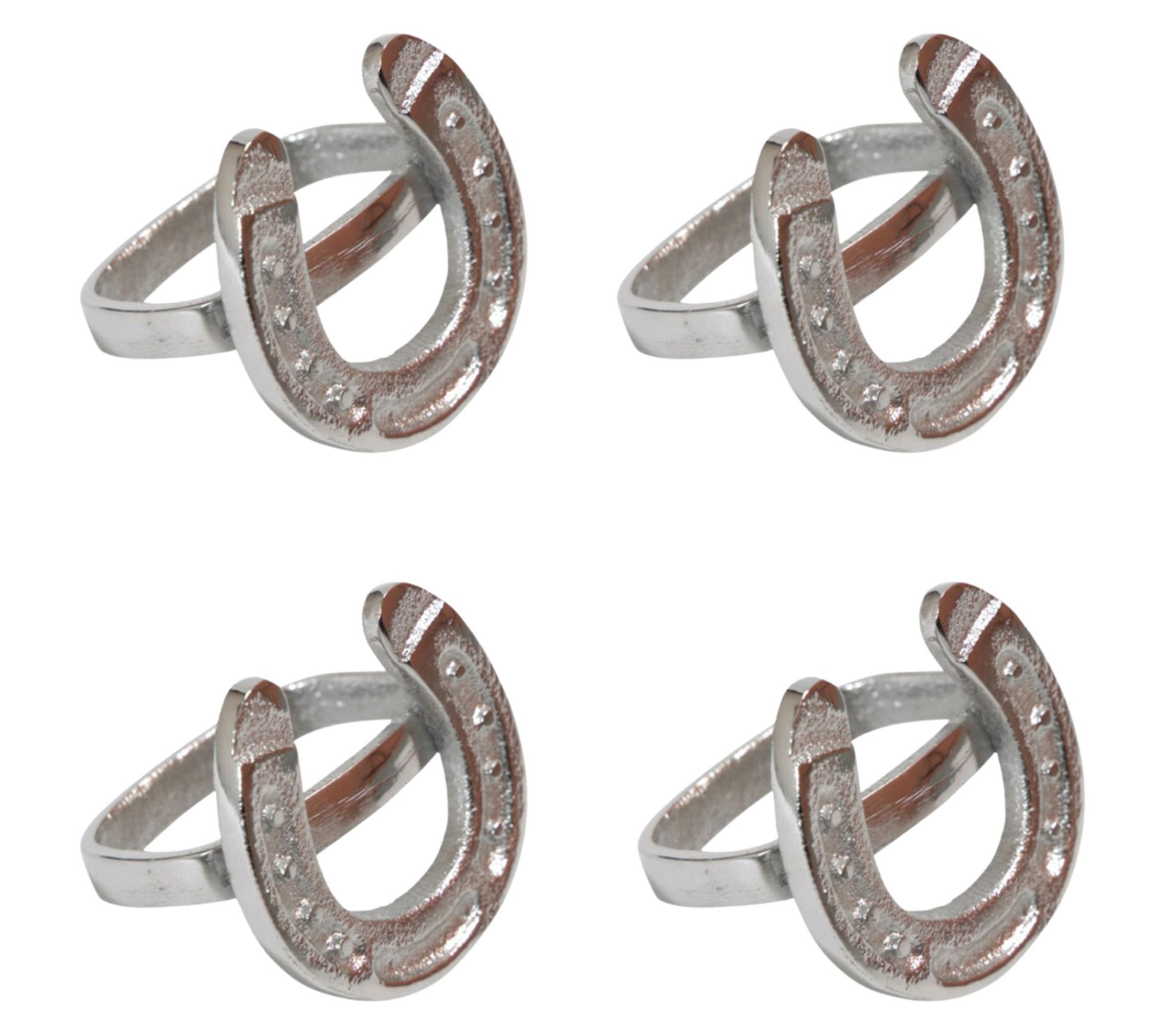 The Homestead Napkin Ring Set offers a rustic charm perfect for any dining experience. Celebrating country style with its unique horseshoe design, these stainless steel rings are excellent additions whether you're hosting cozy family dinners or more formal occasions. Versatile and timeless, this set enhances your table's aesthetic with a distinct flair. From Godinger.