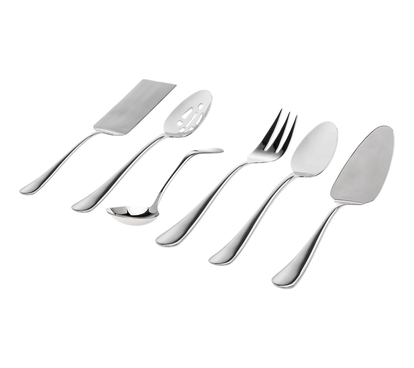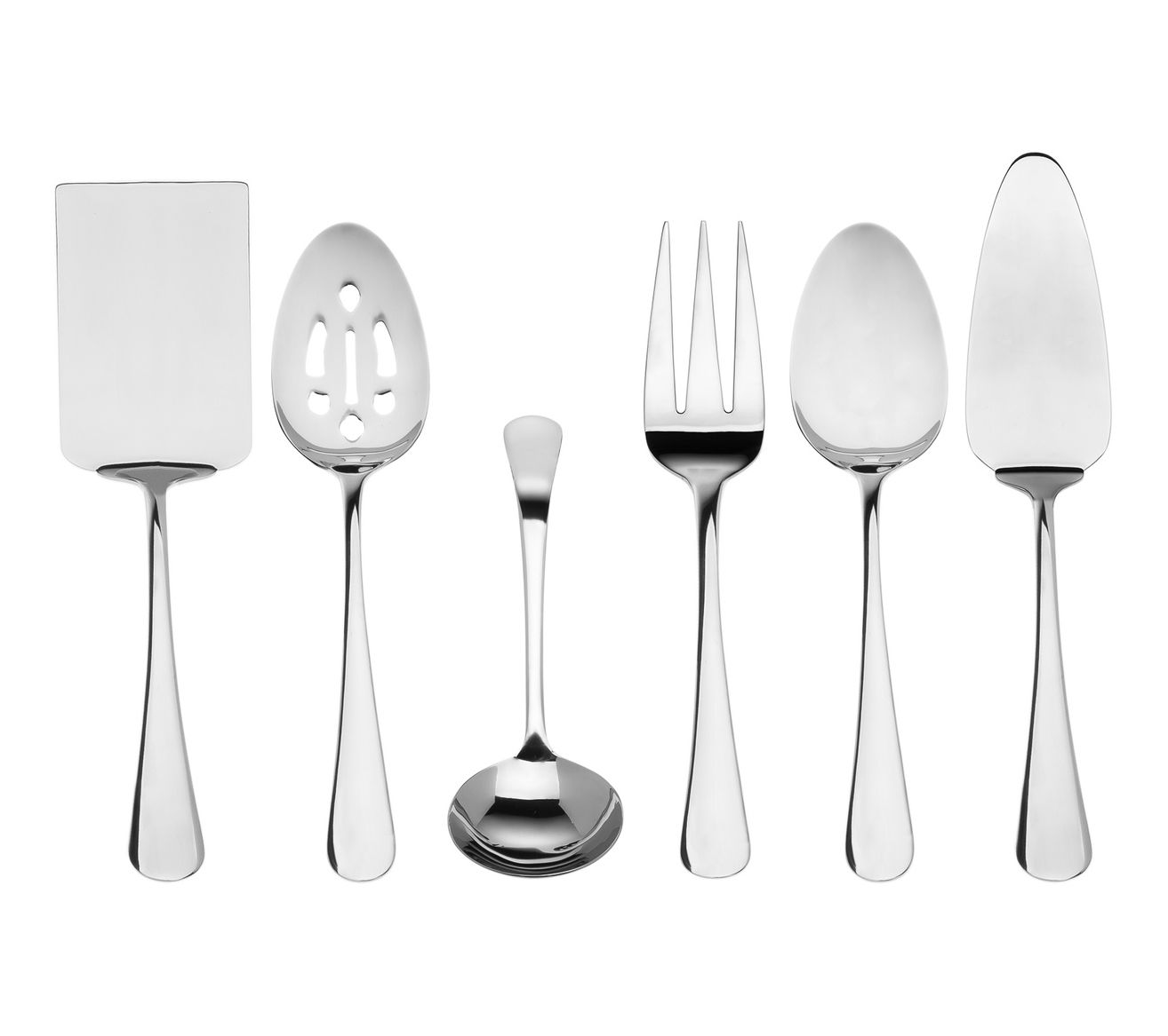 • Includes serving spoon, serving fork, slotted serving spoon, pie server spatula, and gravy ladle