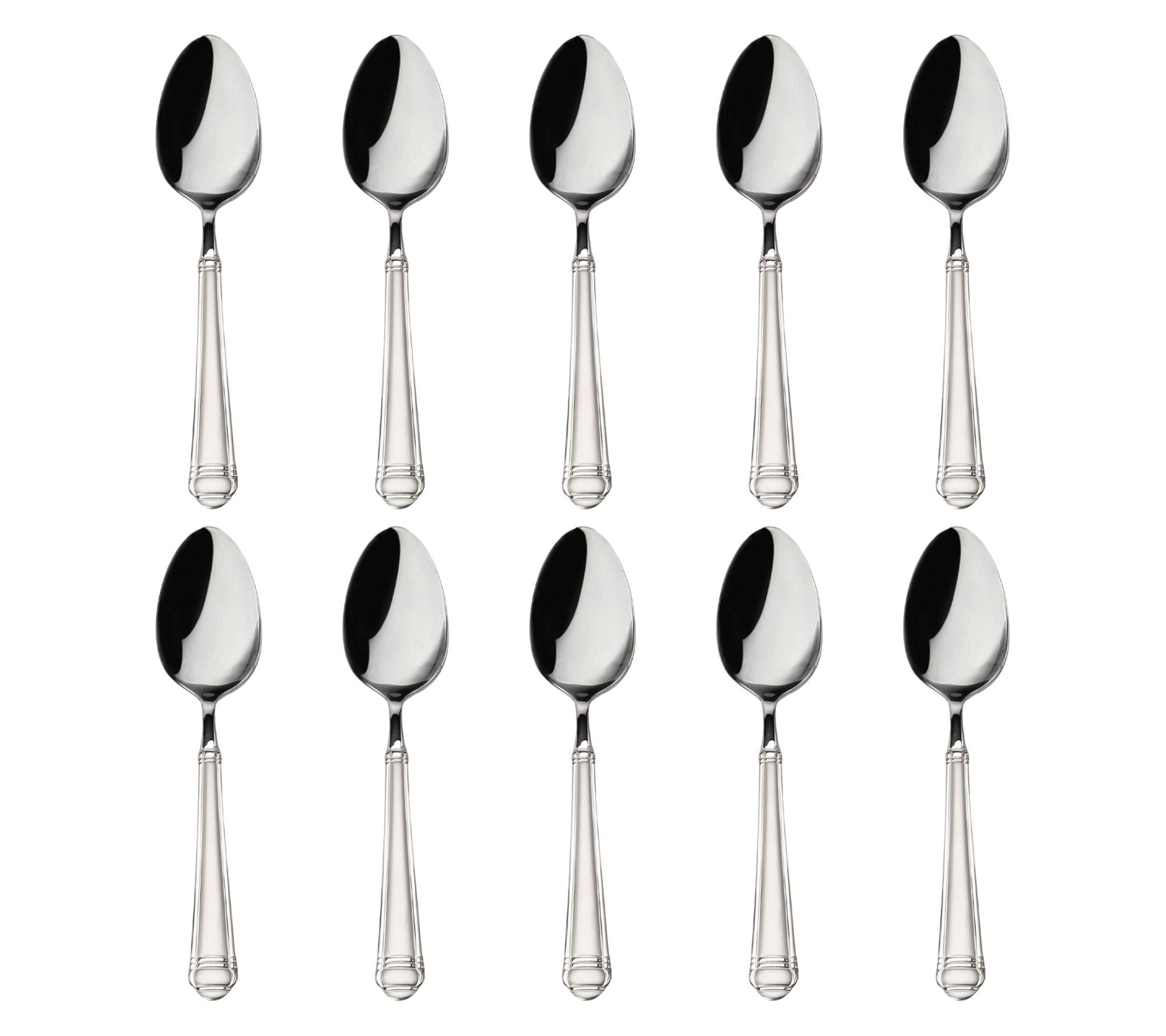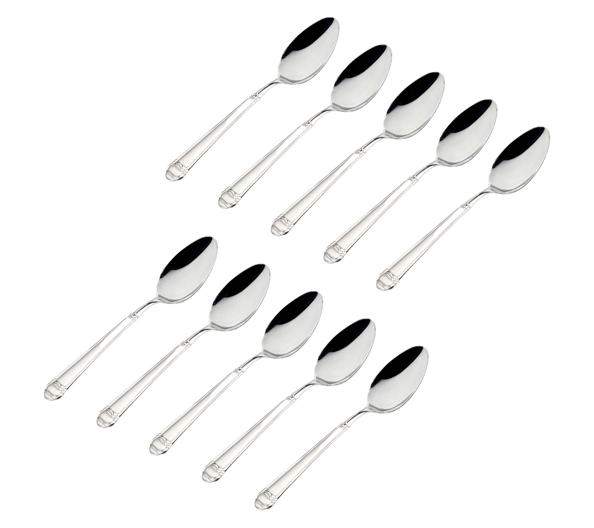 When brunch with friends turns into dinner for ten, you'll be glad to have this elegant set on the table. Each spoon brings a touch of sophistication to the spread, pairing a Victorian-inspired design with a striking sandblast mirrored finish. From Godinger.