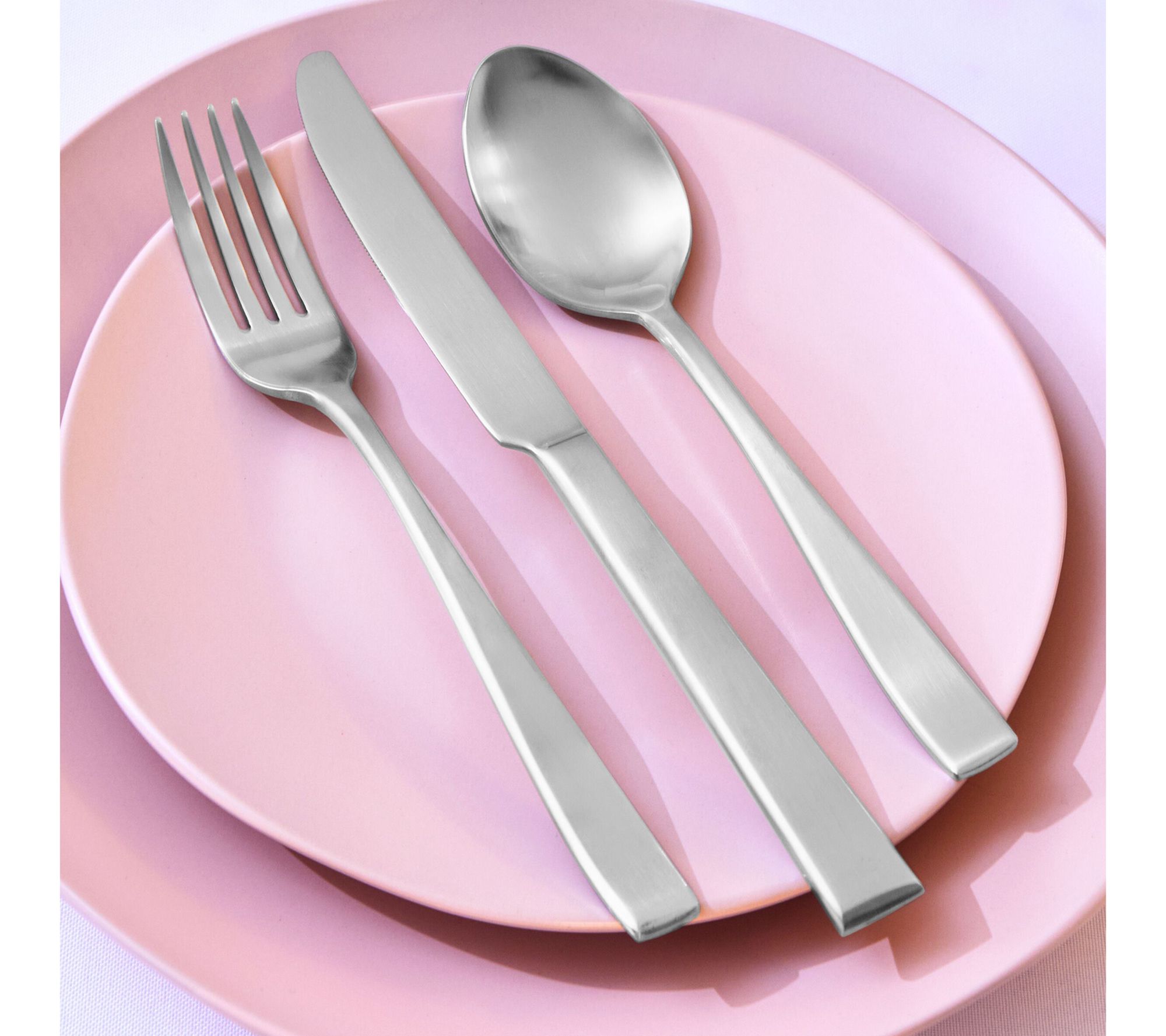 • Includes four dinner fork, four salad forks, four teaspoons, four tablespoons, and four knives