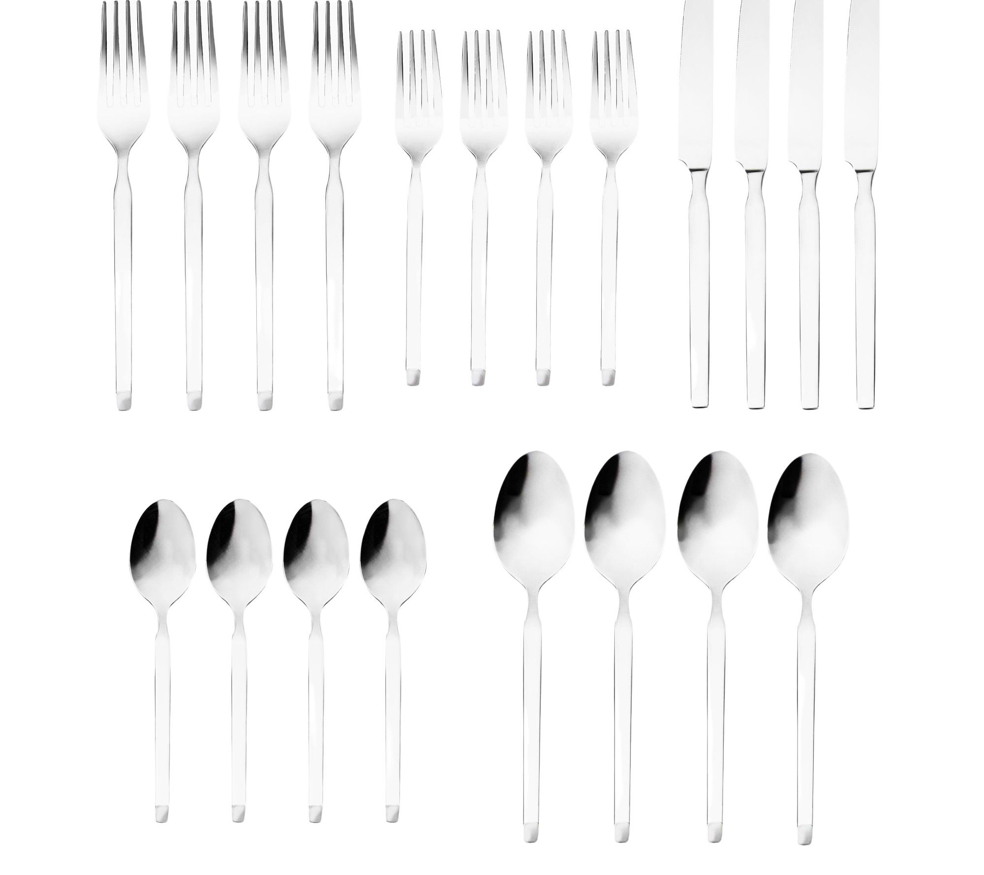 • Includes four salad forks, four dinner forks, four dinner knives, four tablespoons, and four teaspoons
