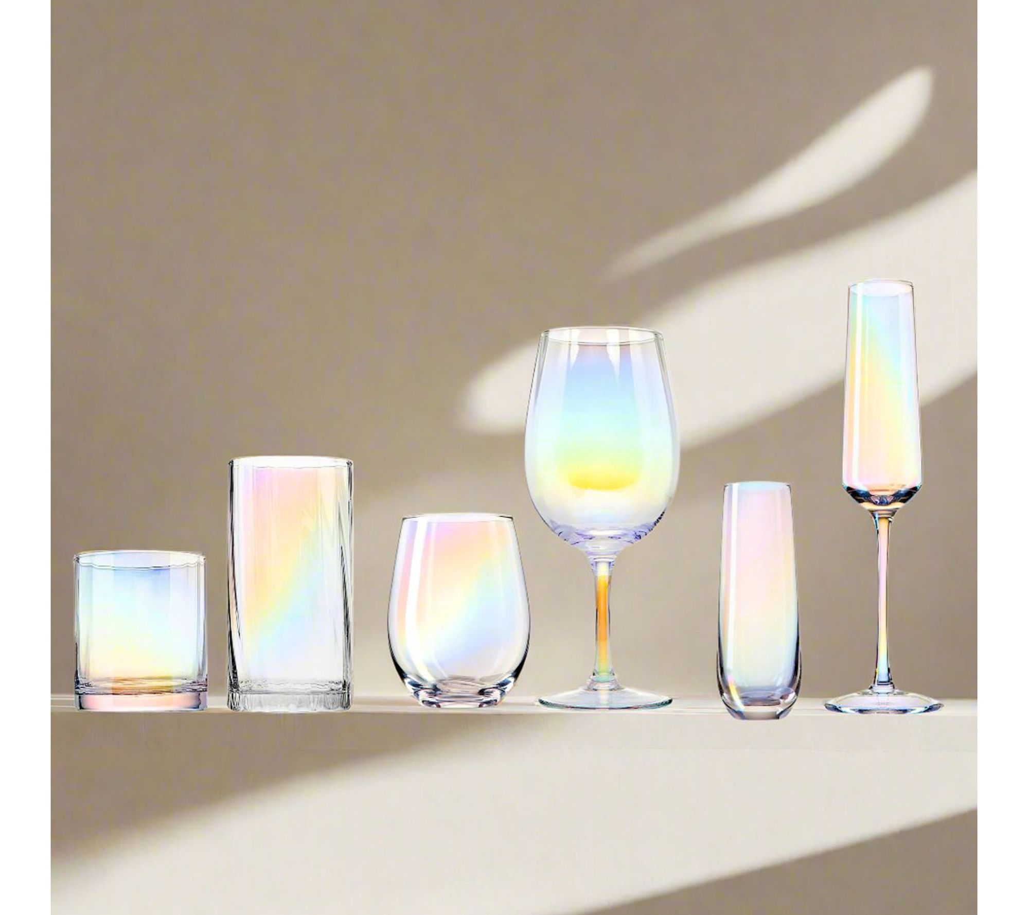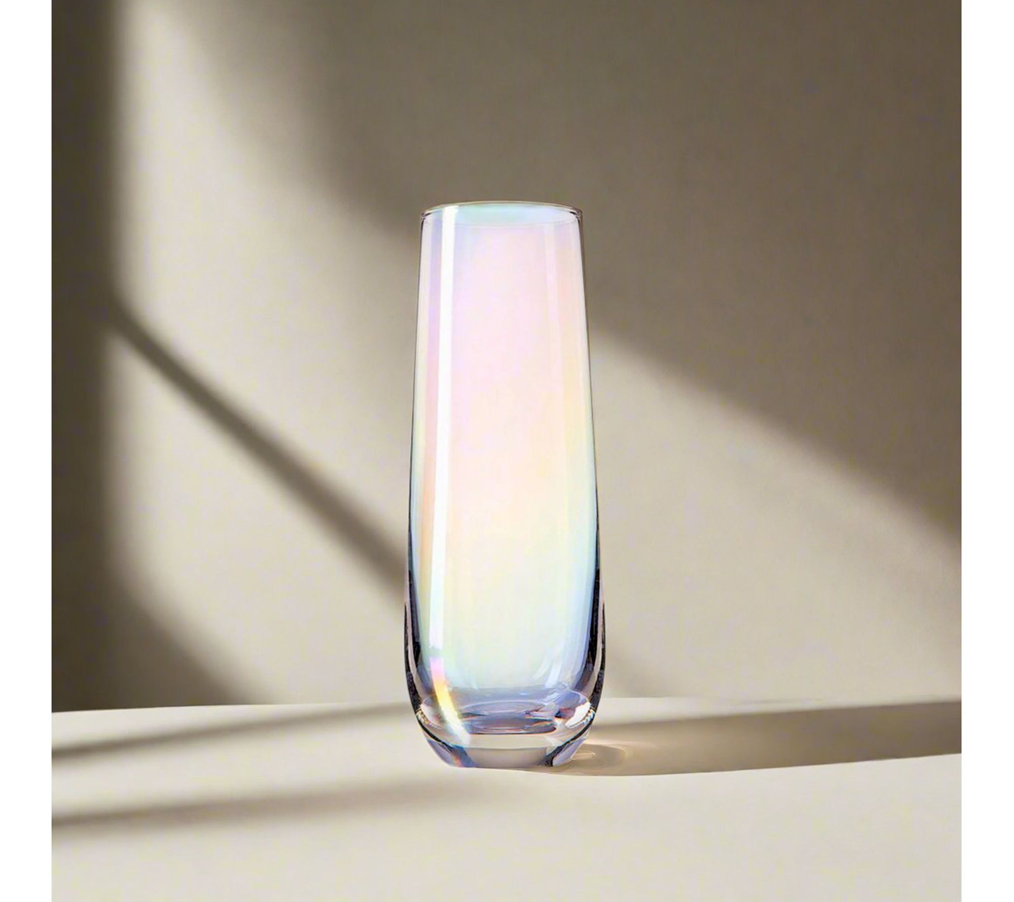 With a gorgeous iridescent design, these stemless flutes offer an eye-catching way to serve your favorite sparkling wines. From Godinger.