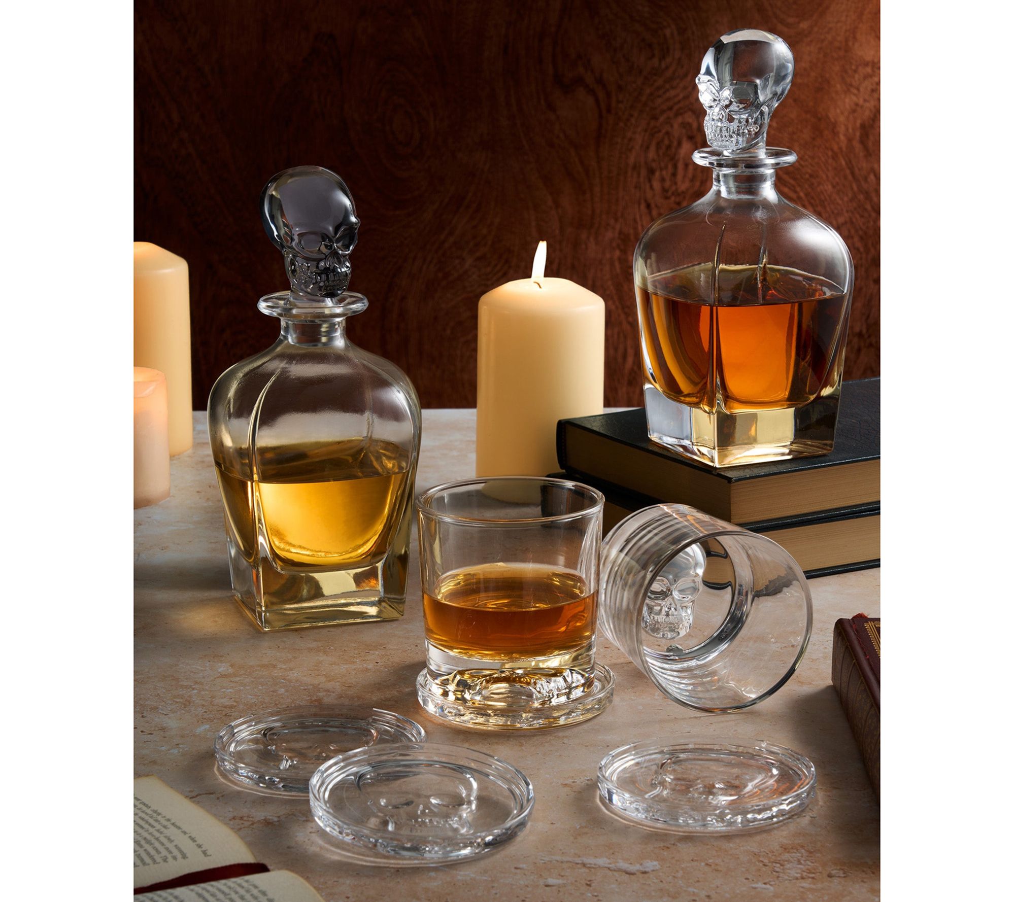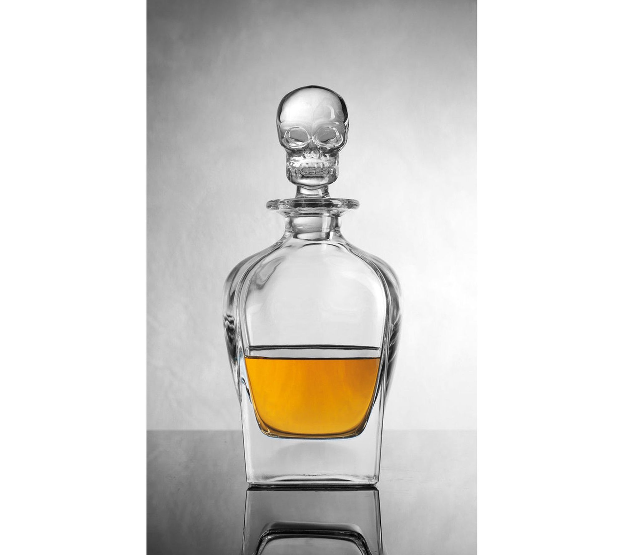 A skull stopper adds a spooky touch to your favorite whiskey inside this decanter. Makes an eye-catching addition to any home bar. From Godinger.