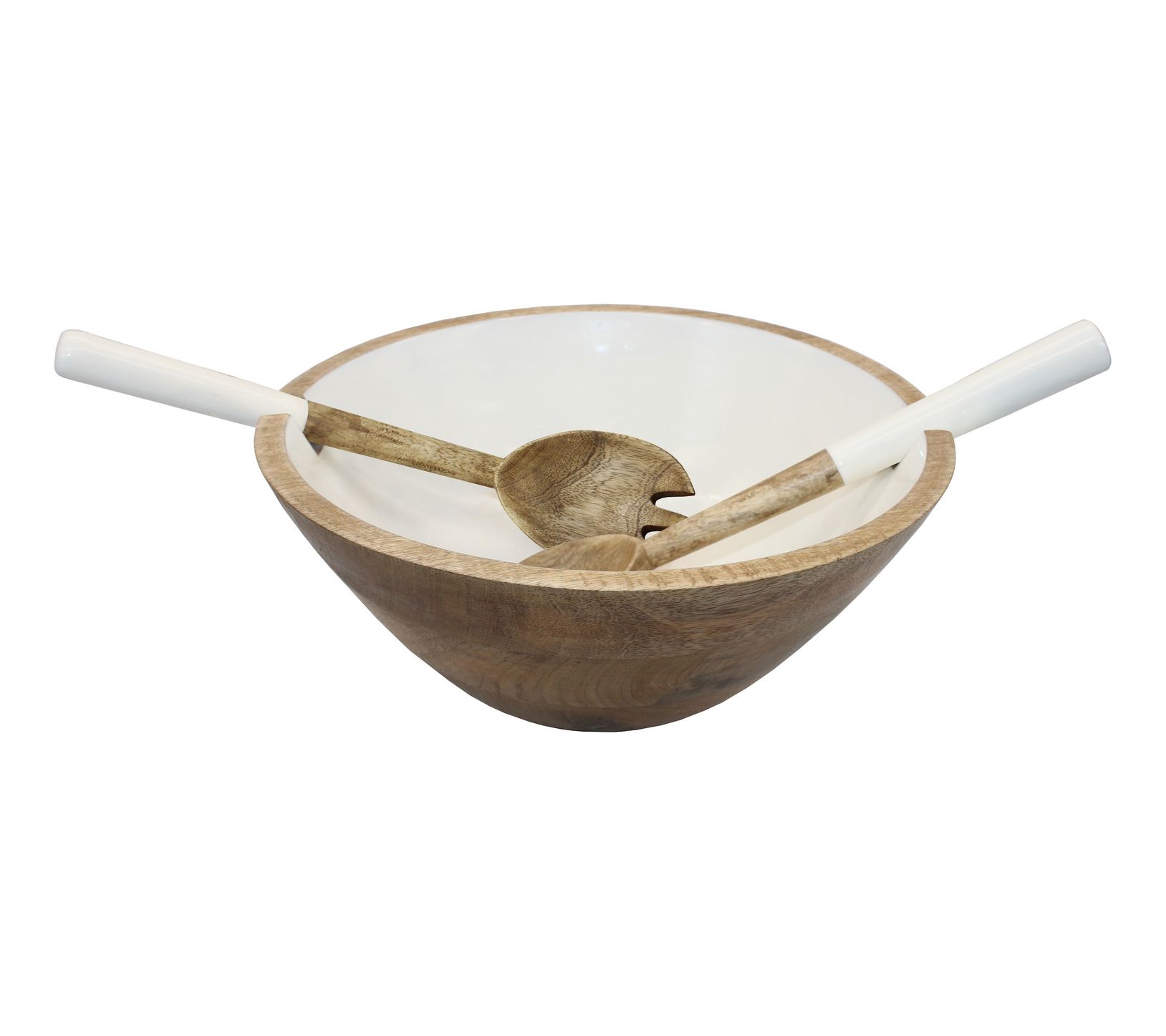 Enhance your dining experience with this elegant Godinger wood enamel salad bowl with servers. Perfect for special occasions or everyday use, its refined design adds a touch of sophistication to your table setting. The beautiful combination of acacia wood and enamel showcases meticulous craftsmanship that feels both luxurious and timeless. Elevate your dinnerware collection with this stunning set. From Godinger.