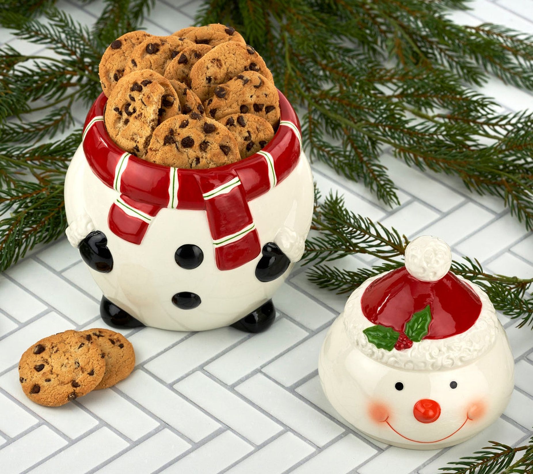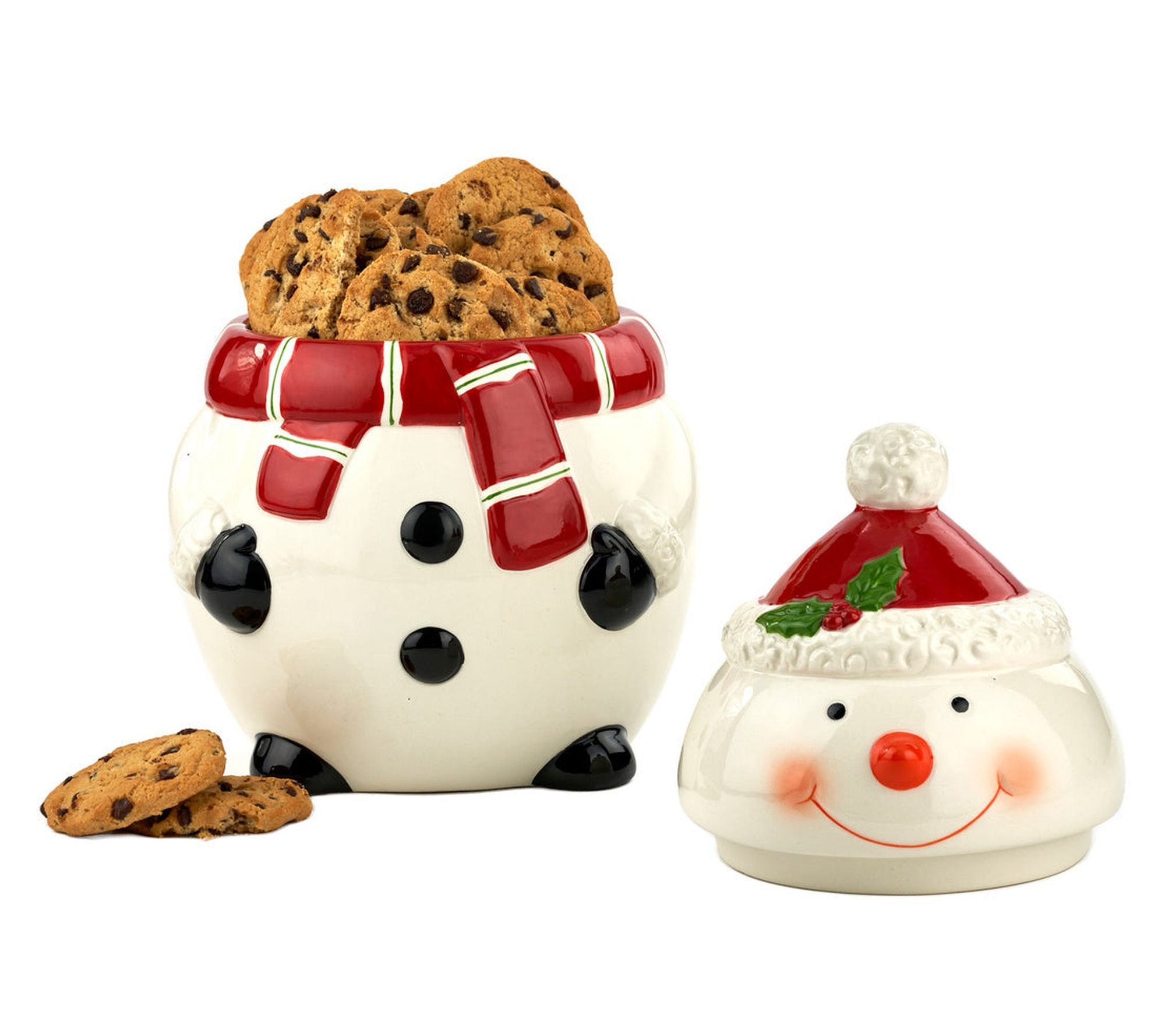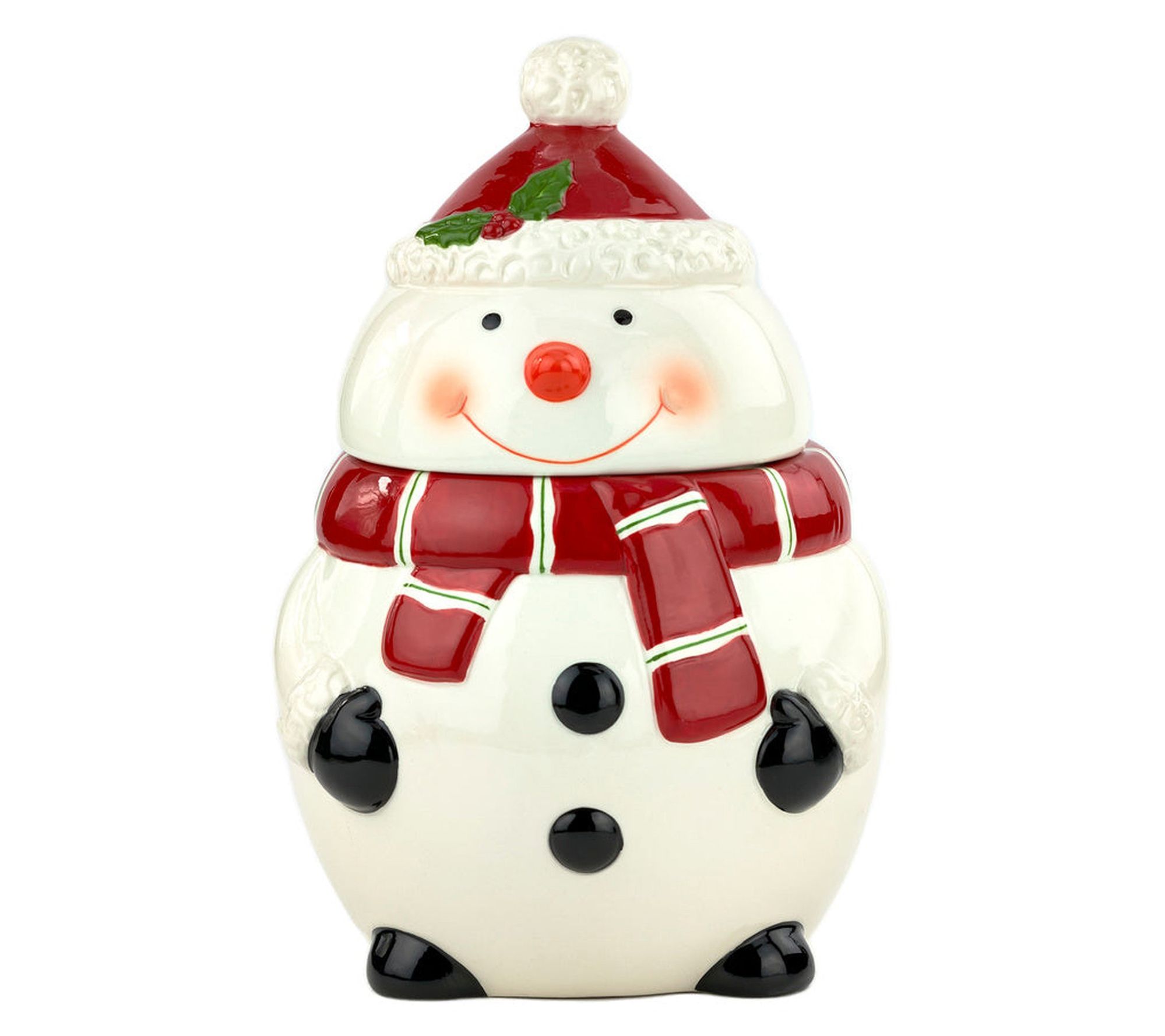 Add a festive touch to your holiday season with this whimsical snowman cookie jar. It's the perfect way to store your favorite Christmas treats, ready to bring joy and delight to family gatherings. A charming addition to your kitchen, it's a practical pick for your holiday baking needs. From Godringer.